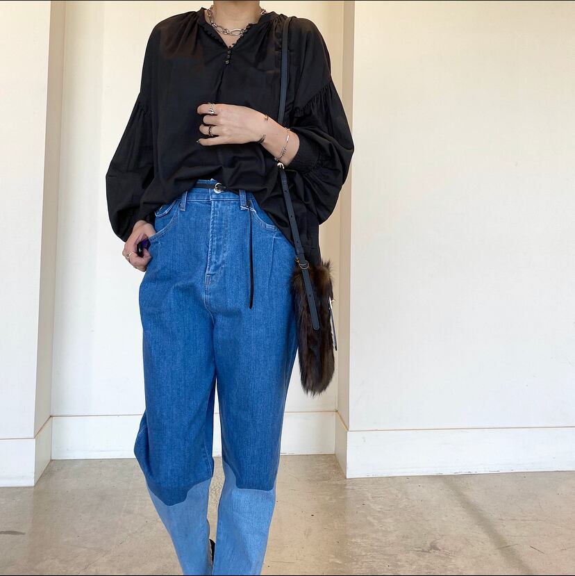 ふんわりと甘さのあるアイテムなので、デニムなどのカジュアルなボトムスとのコーディネートがおすすめ。