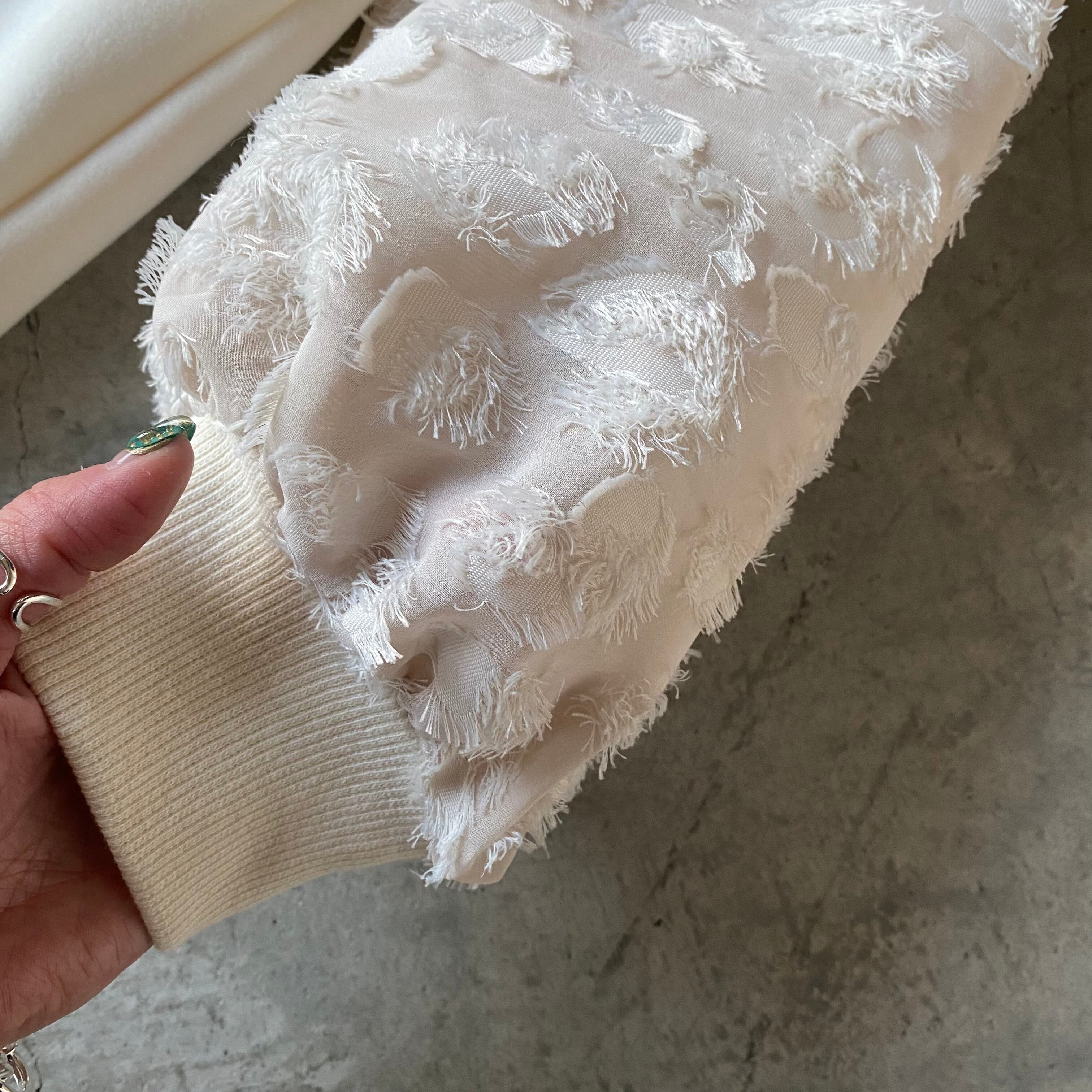 ボリューム袖ジャガードで立体感のある着こなしに♪ ドッキングスリーブポンチスウェットです。