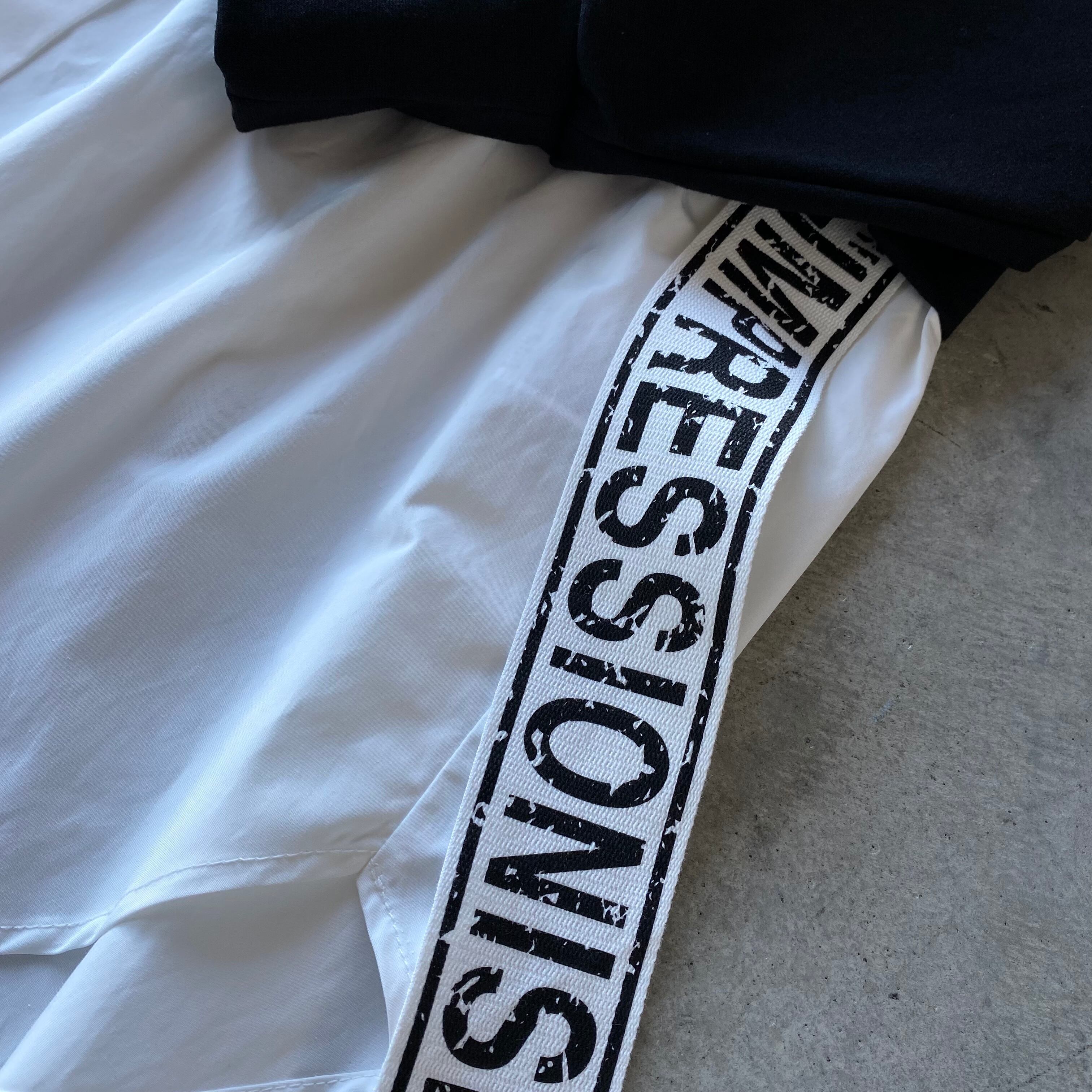 Srieee シュリ サイドのロゴテープデザインが着こなしのアクセントに♪ サイドロゴテープ 異素材コンビレイヤードトップス