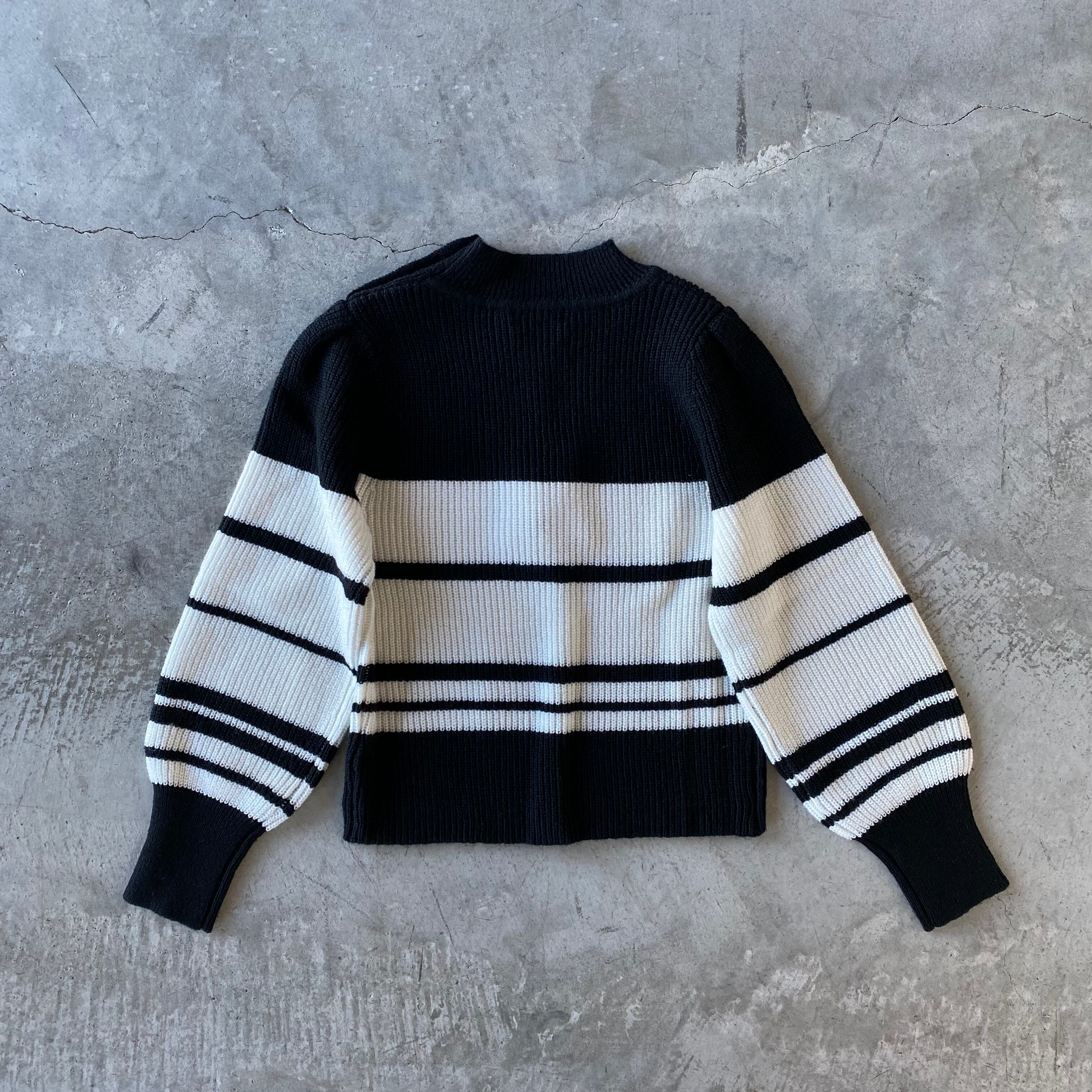 SUNCOO Paris ふんわりお袖と肩のメタルボタンがポイント♪ 肩ボタンボリュームスリーブボーダーニットプルオーバー