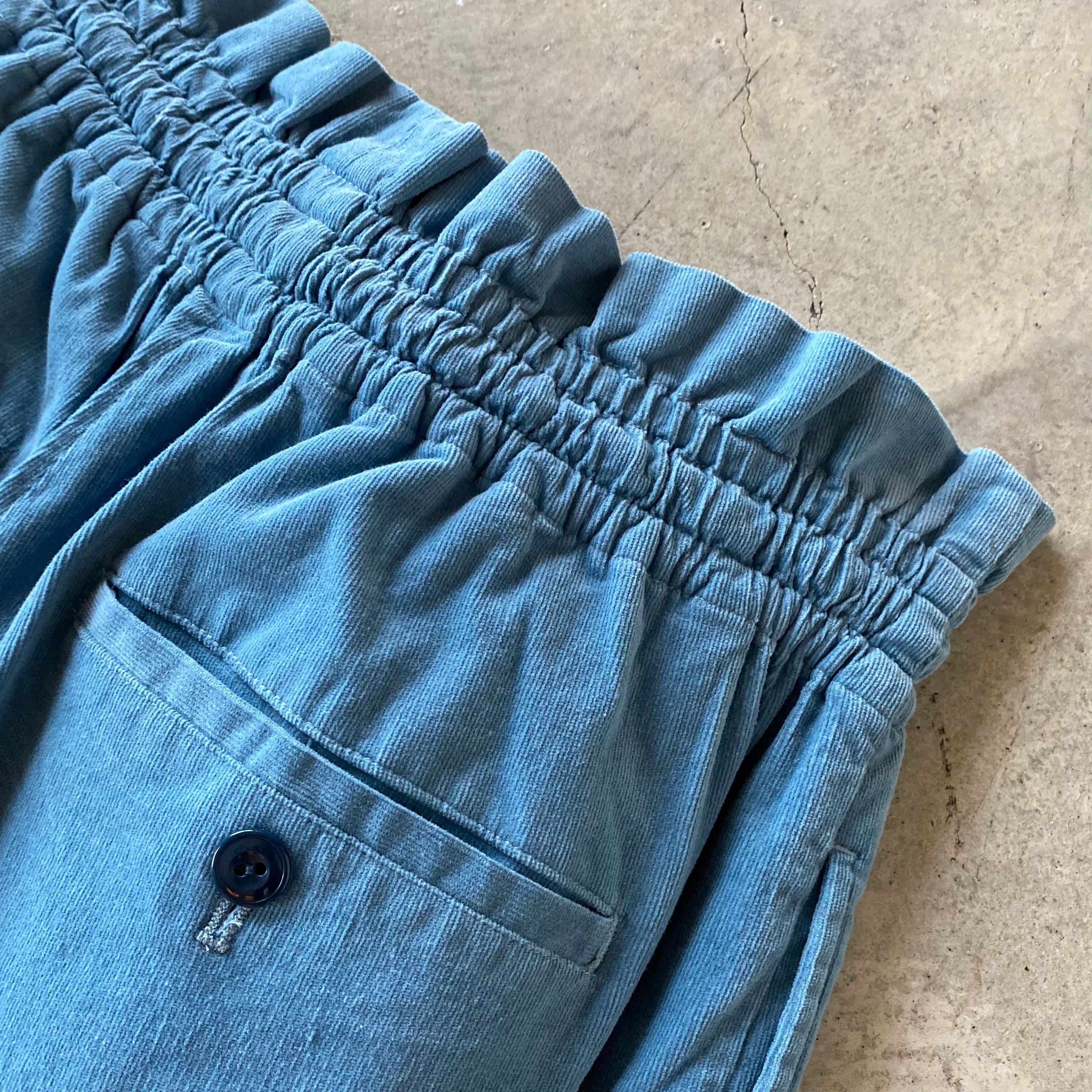 キレイなブルーカラーで、コーデの主役にもオススメなコーデュロイワイドパンツです。