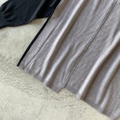 ニットは後ろ身頃のカラーを切り替えた、さらっとした素材感のバイカラーのデザイン。