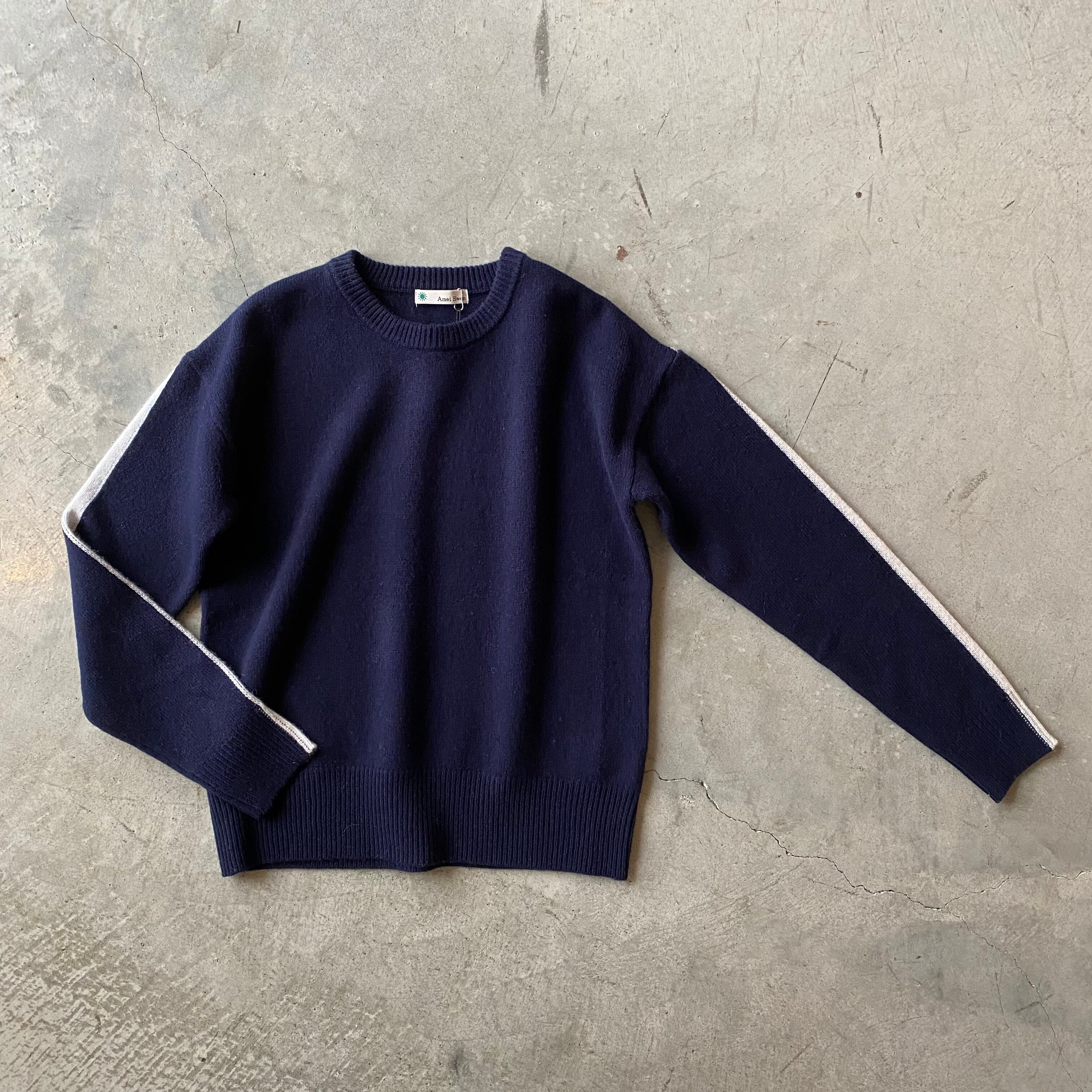 Amei Swen 袖に入った細ラインで差が付く!!デザインニット♪ バイカラーライン プルオーバーニット