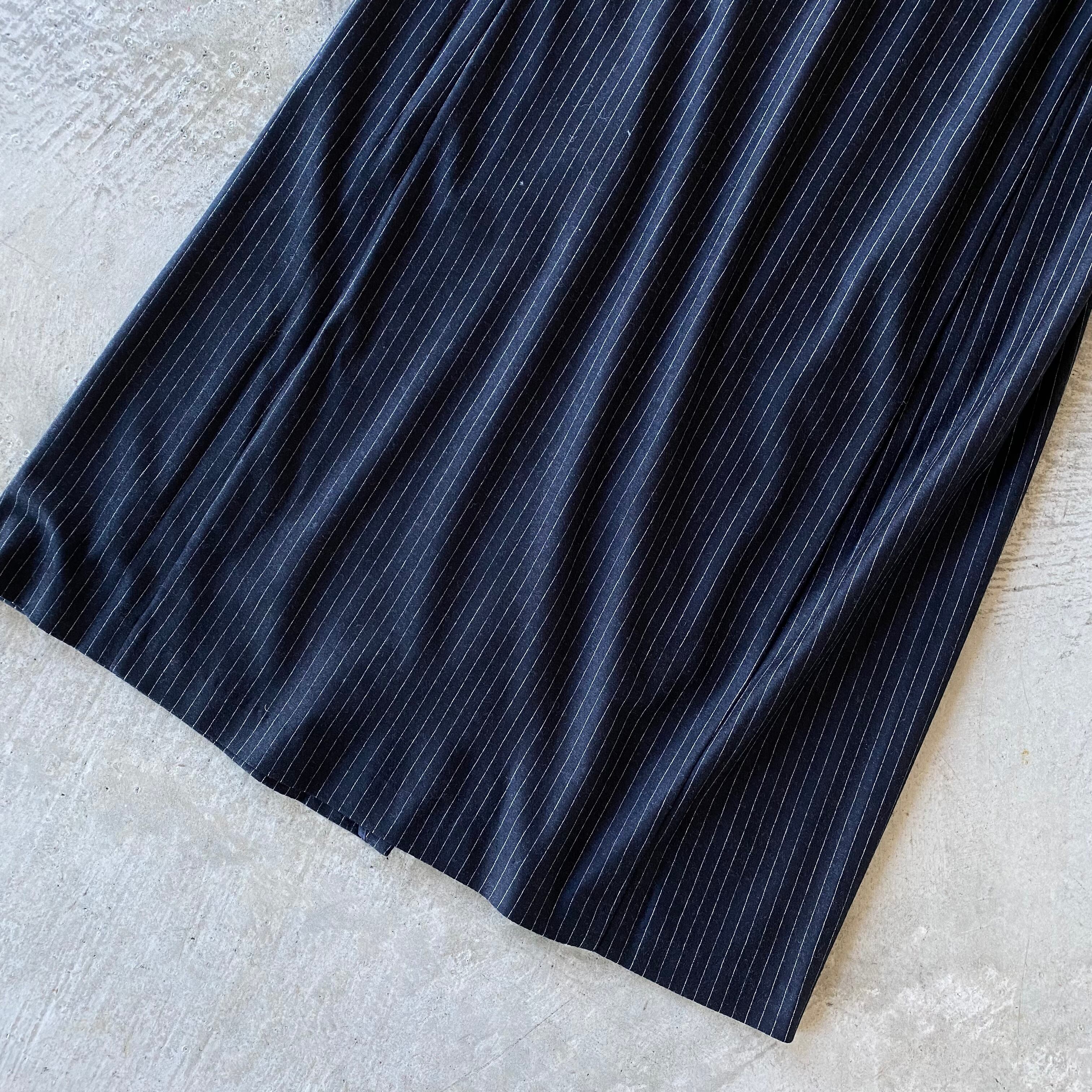 ストライプ柄で自然と"Iライン"に◎♪縦長効果でスタイルアップ♪ ダブルボタン ウール×シルク 上質カットソーストライプロングジレ/ベスト