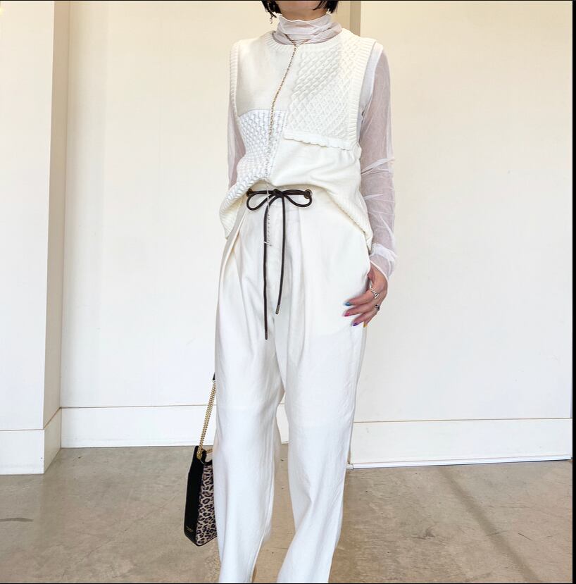 Si:m スィーム トレンドの透け感あるシルエットでニットベストにもぴったり♪ 異素材コンビシアーインナートップス