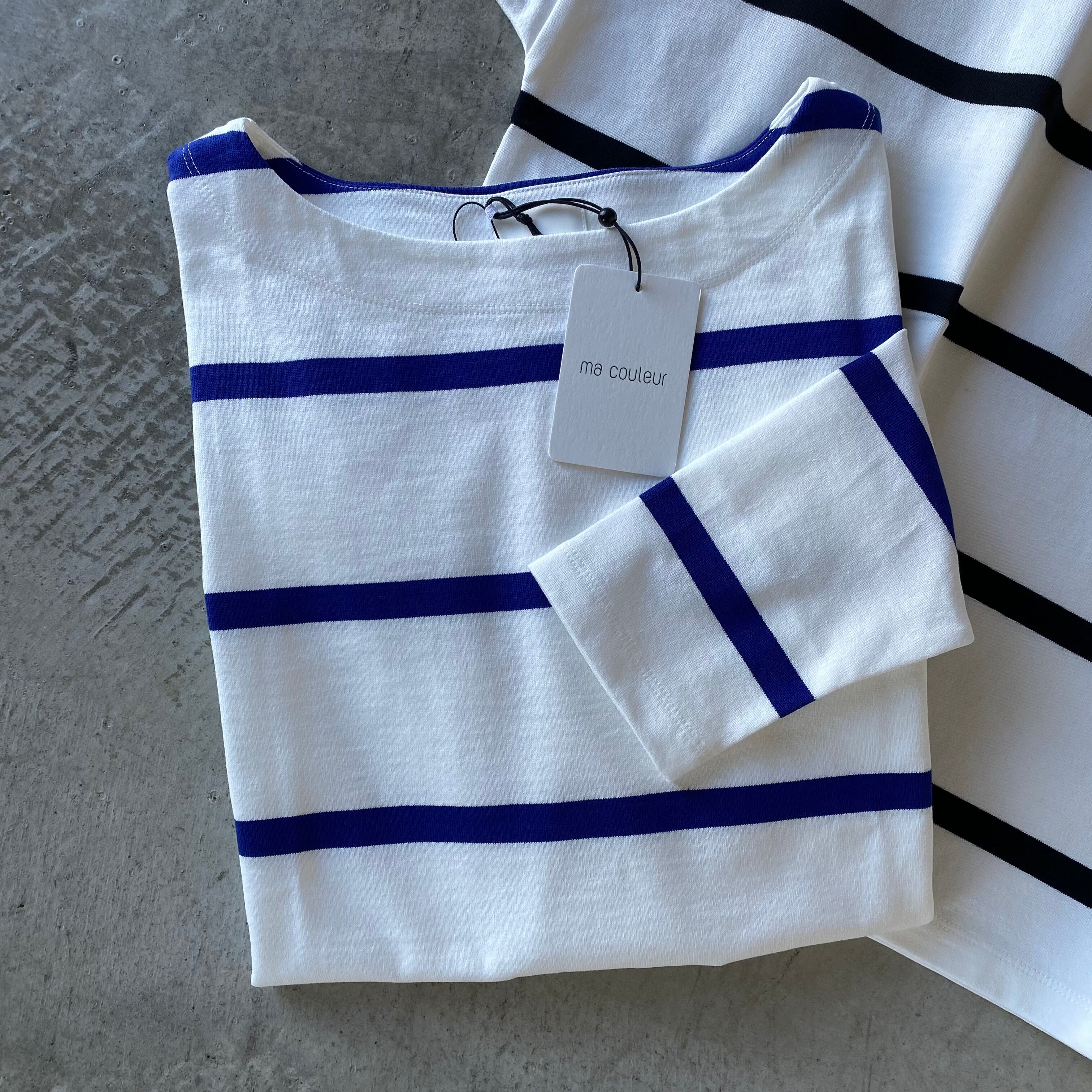 “再再再入荷”ma couleur マ クルール カジュアルになりすぎない計算されたボーダーピッチが◎♪ オトナが着られる♪ ボートネックボーダーカットソートップス
