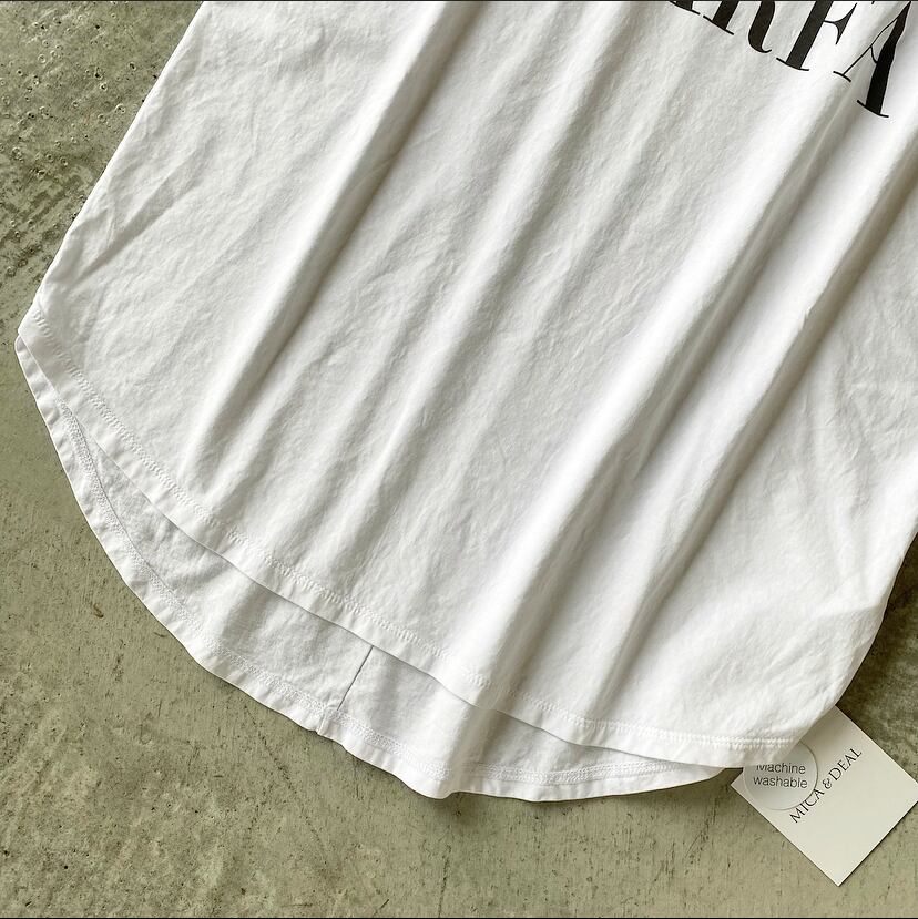 MICA &DEAL マイ&ディール マイカ&ディール 毎シーズン大人気!ちょっぴりキレイめ感もあるオトナが安心なTシャツシリーズ♪ "MARFA"ロゴヘムラウンドTシャツ