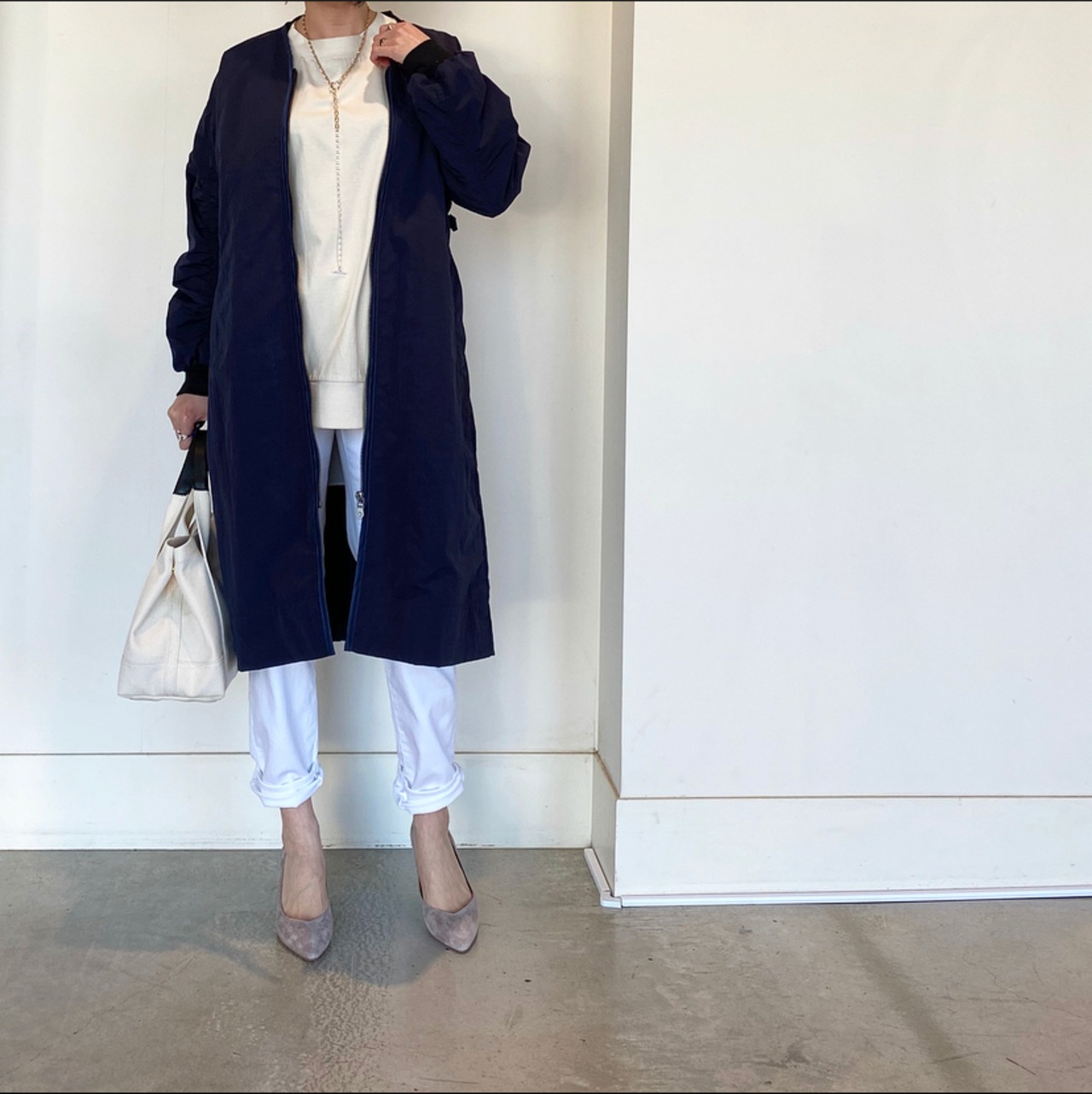 後ろ姿もサマになる!躍動感のある雰囲気に仕上げた春アウター。