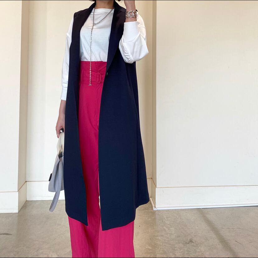 このパンツ1枚で春夏らしいテンションのあがるコーディネートが完成するオススメカラーパンツです。