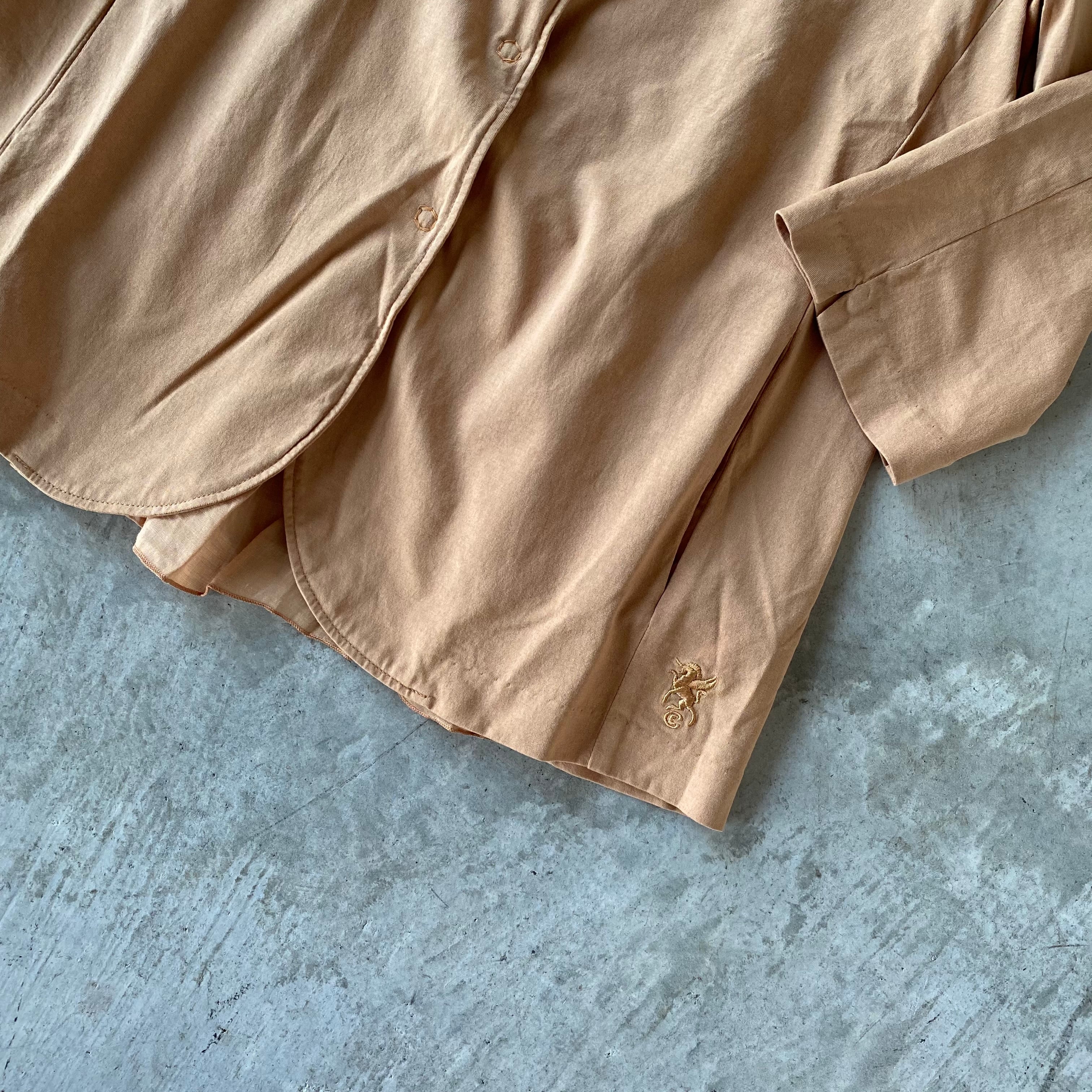 お袖、前身頃胸下部分はカットソー素材、後身頃、前見頃胸上は布帛素材の切り替えになっています。