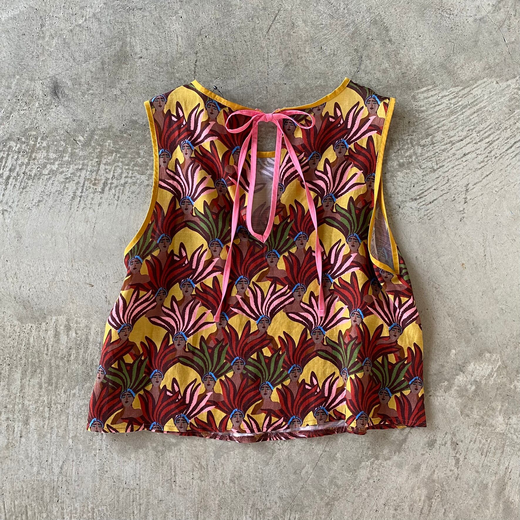 インポートらしい目を引くプリントが斬新なノースリーブブラウス。