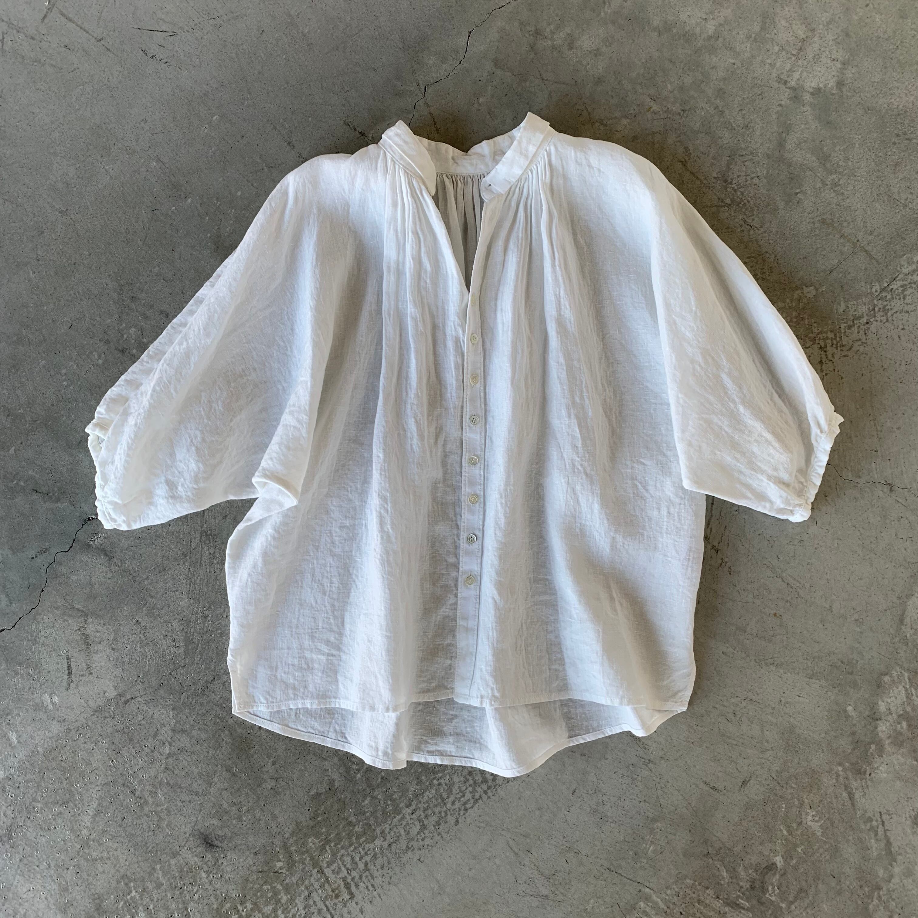 ふんわりシルエット&さらっと上質リネンが心地よい♪ フロントボタンギャザーブラウスです。