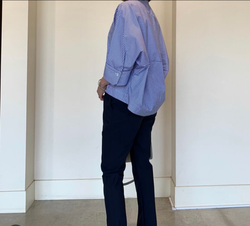 フロントはショート丈、バックは気になる腰回りが隠れる着丈なので、ワイドパンツなどのボリュームボトムスから、テーパードパンツ、ジョグパンツまで相性抜群です♪