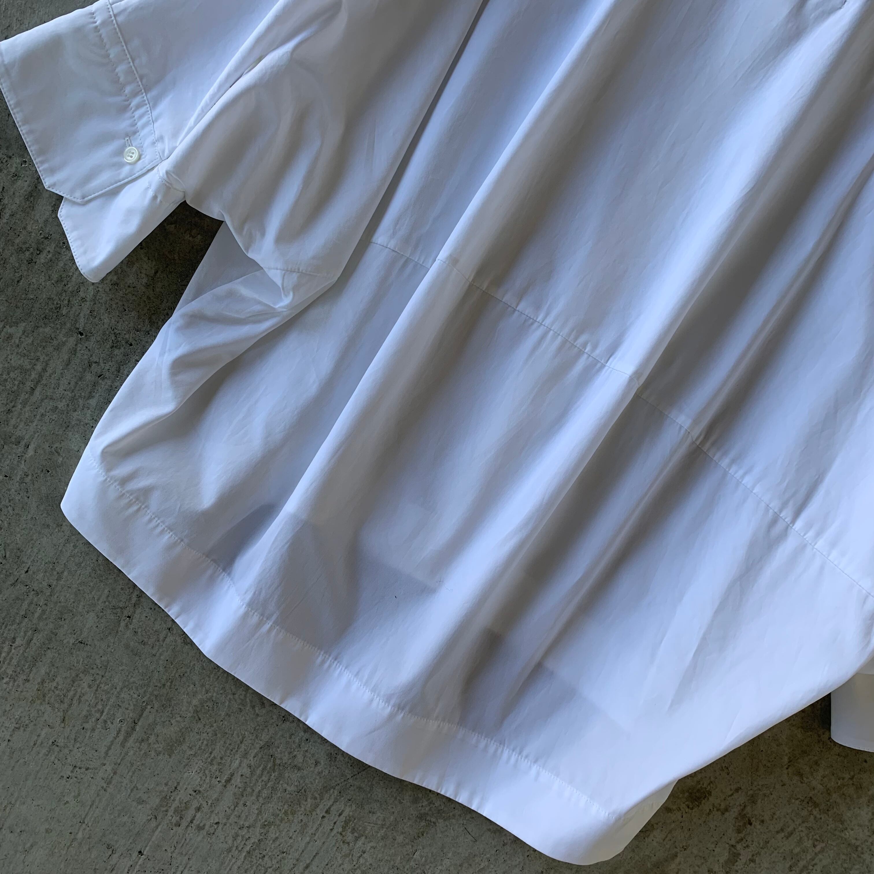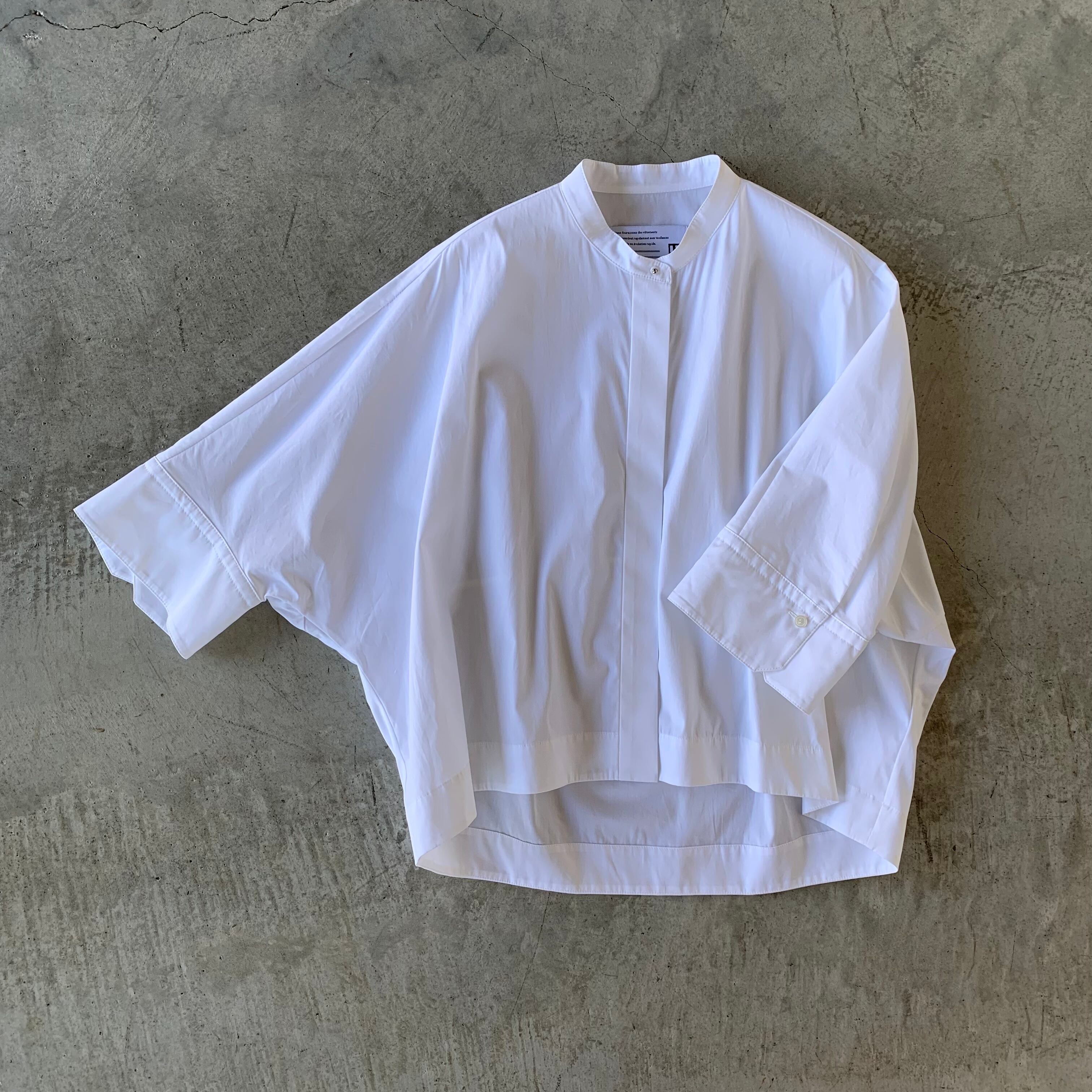 絶妙な丈感が合わせやすい♪ コットンタフタバンドカラー シャツブラウスです。