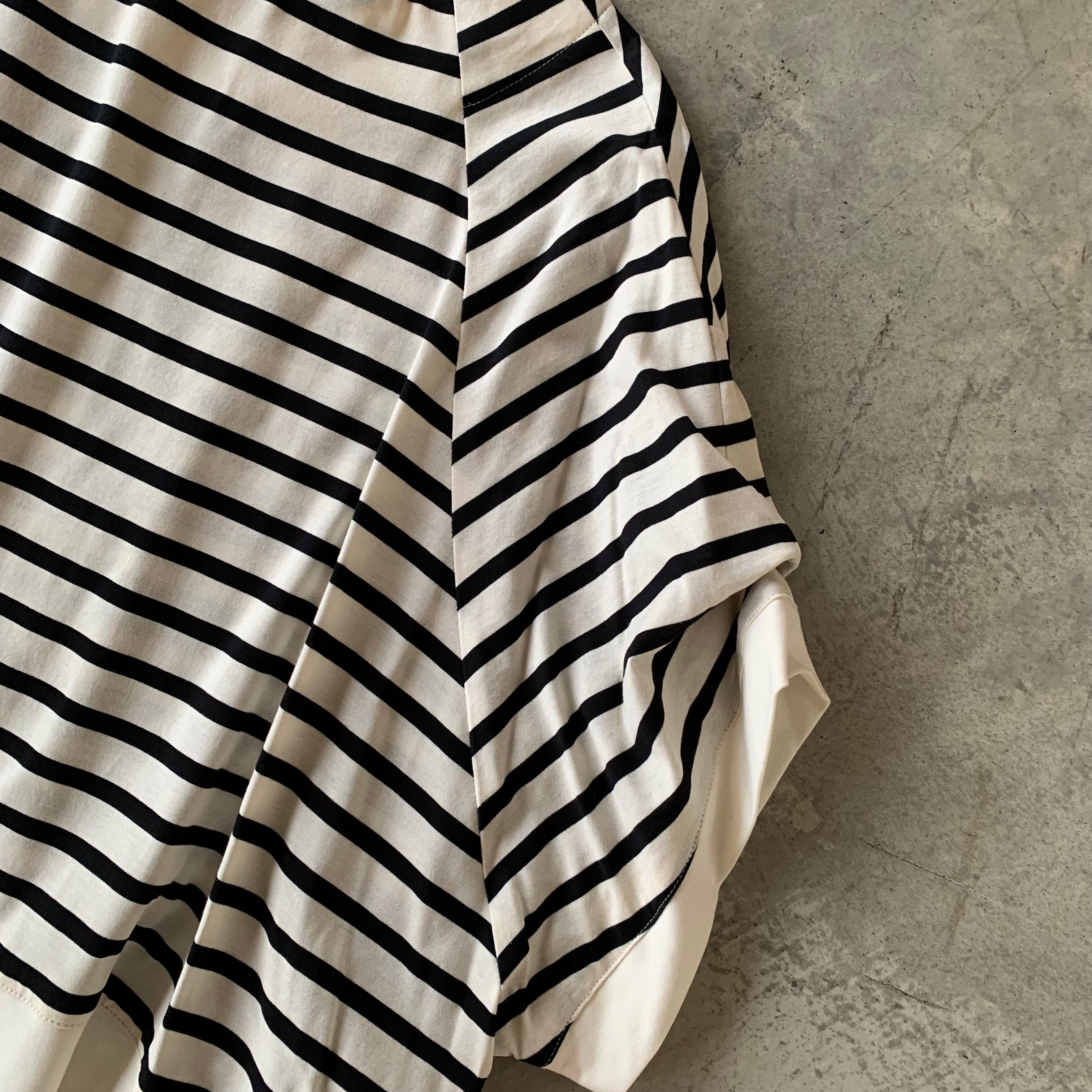 前後で異なるボーダーピッチがこなれポイント♪ ボーダーカットソーフレアプルオーバーです。