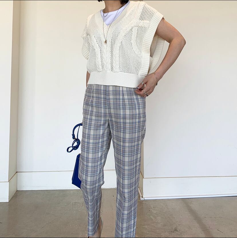 ASYVAD アシヴェイド コンパクトな着丈で絶妙な旬顔コーデに♪ シルク混メッシュケーブルベスト