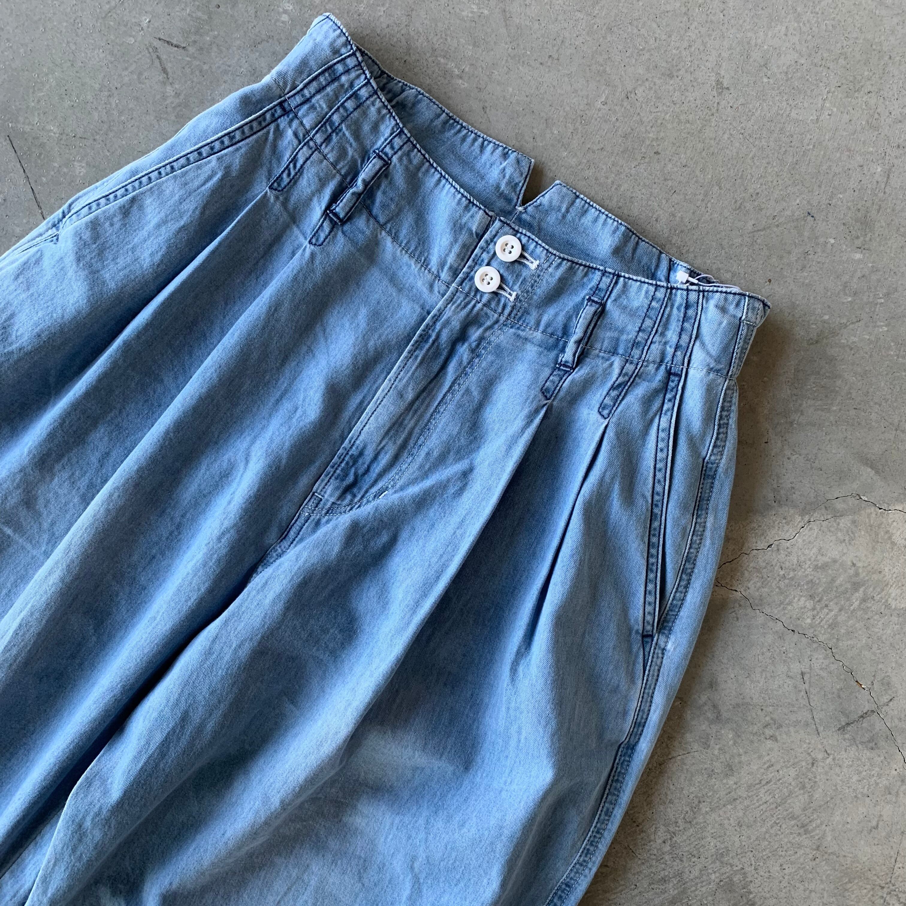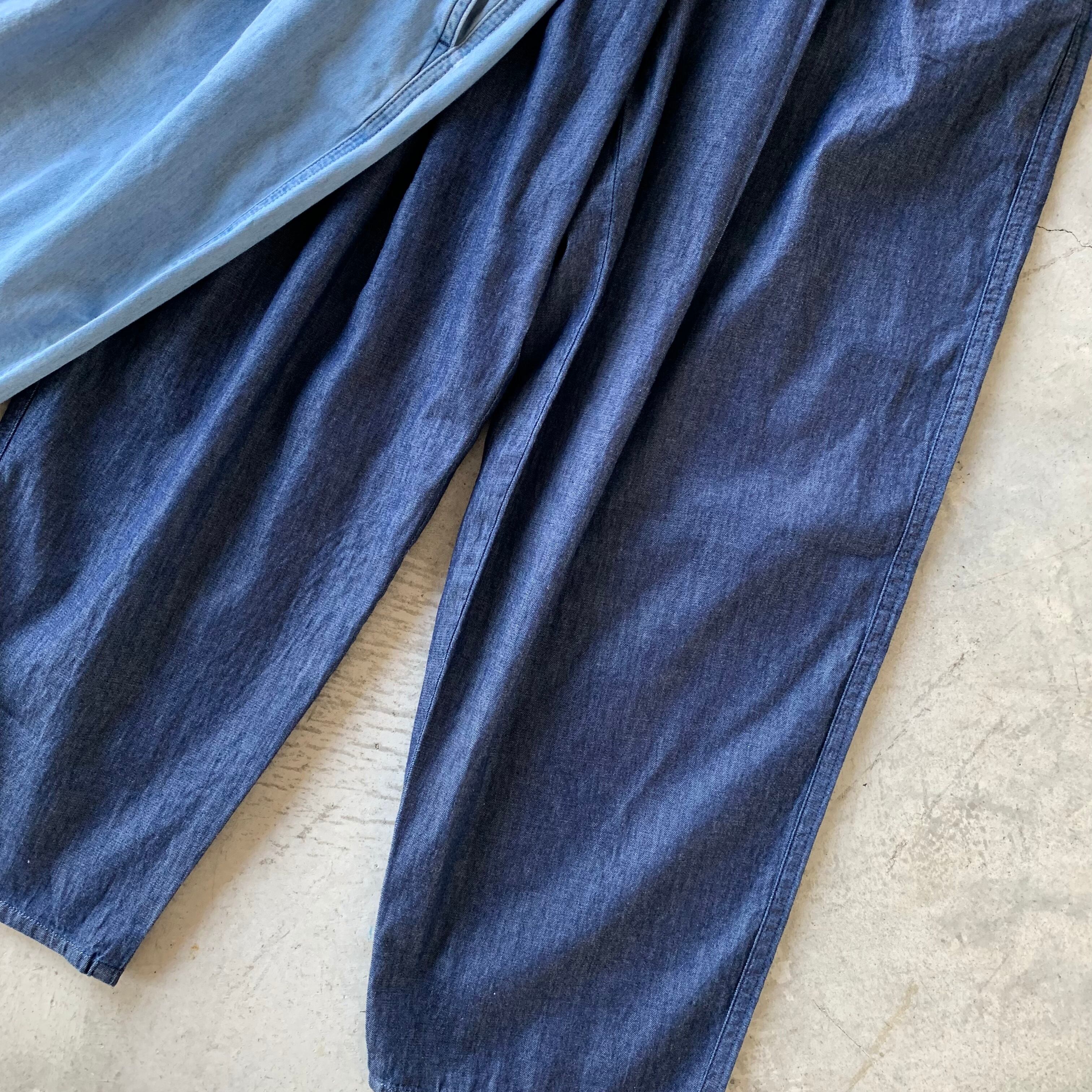 春夏にピッタリの、清涼感のあるダンガリー素材を使ったパンツ。