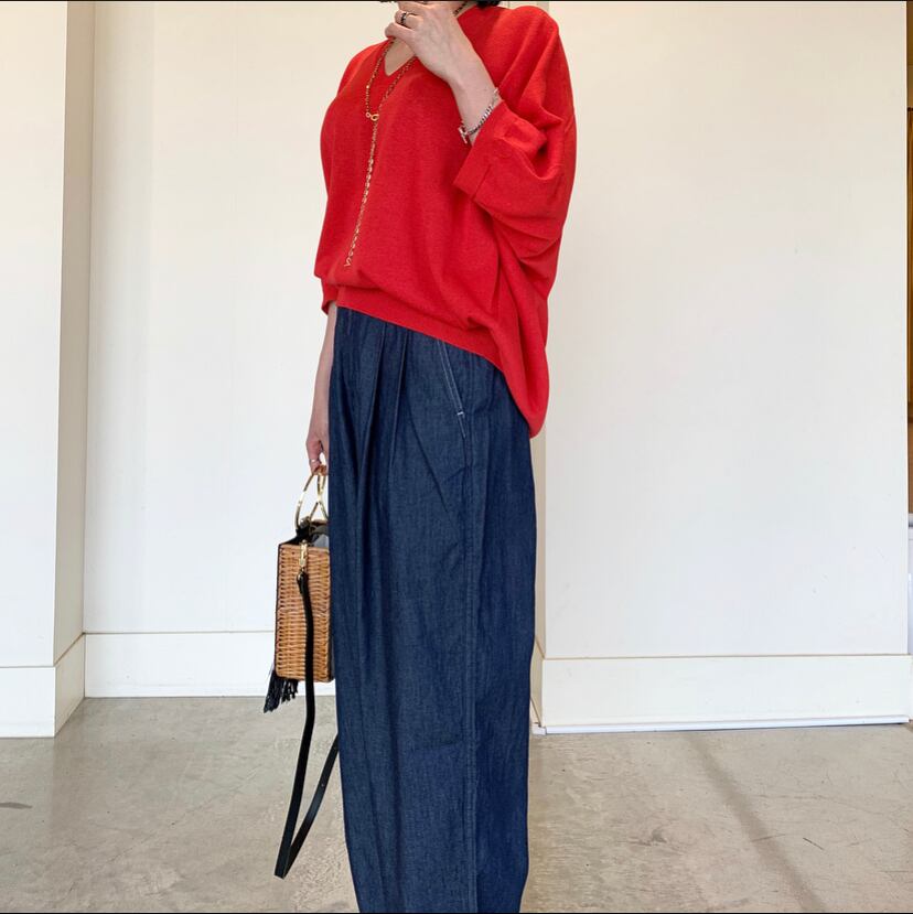 夏のデニムはコレに決まり♪♪ ゆるテーパードダンガリー フロントタックデニムパンツです。