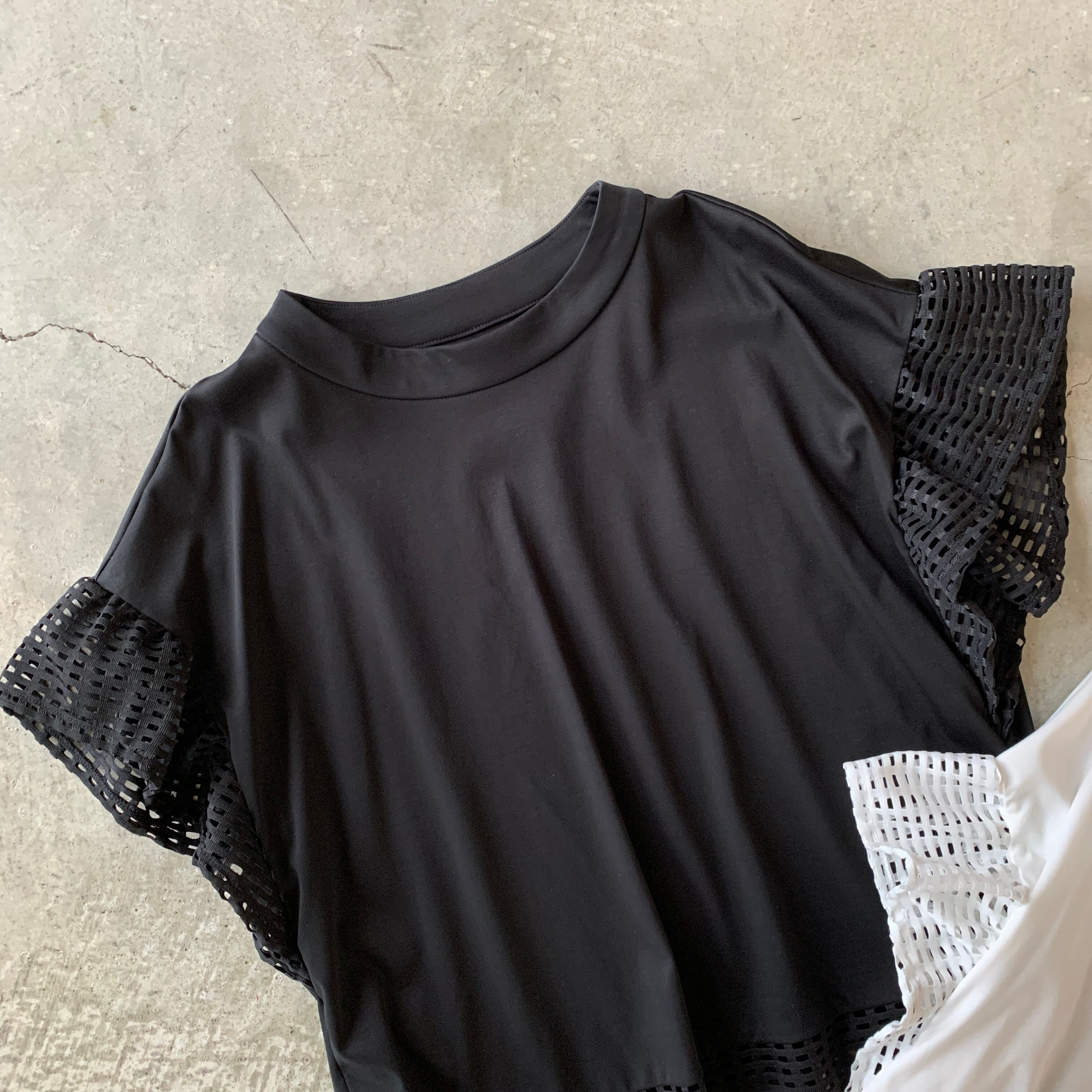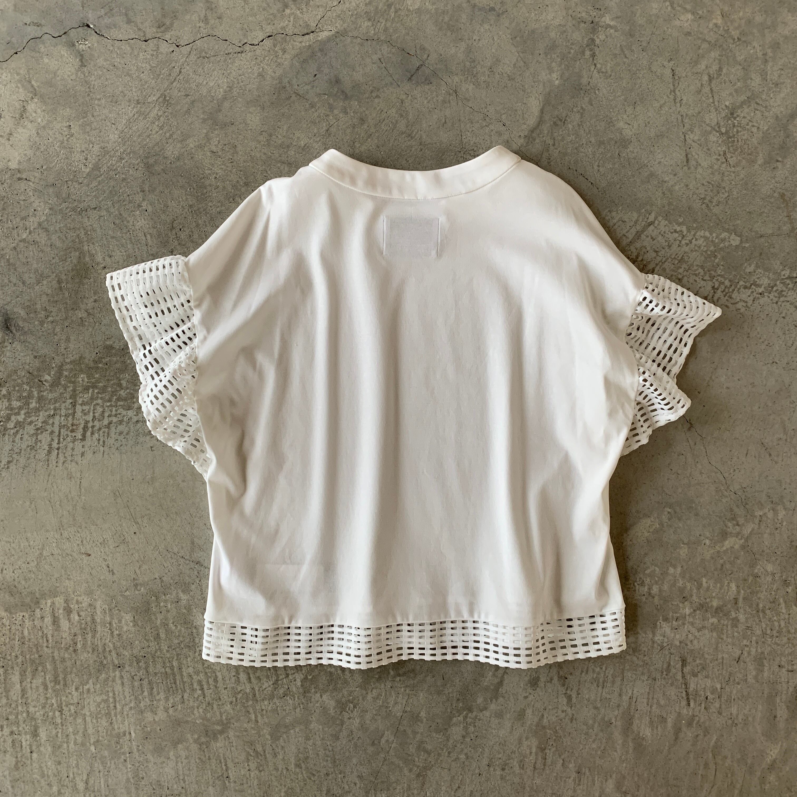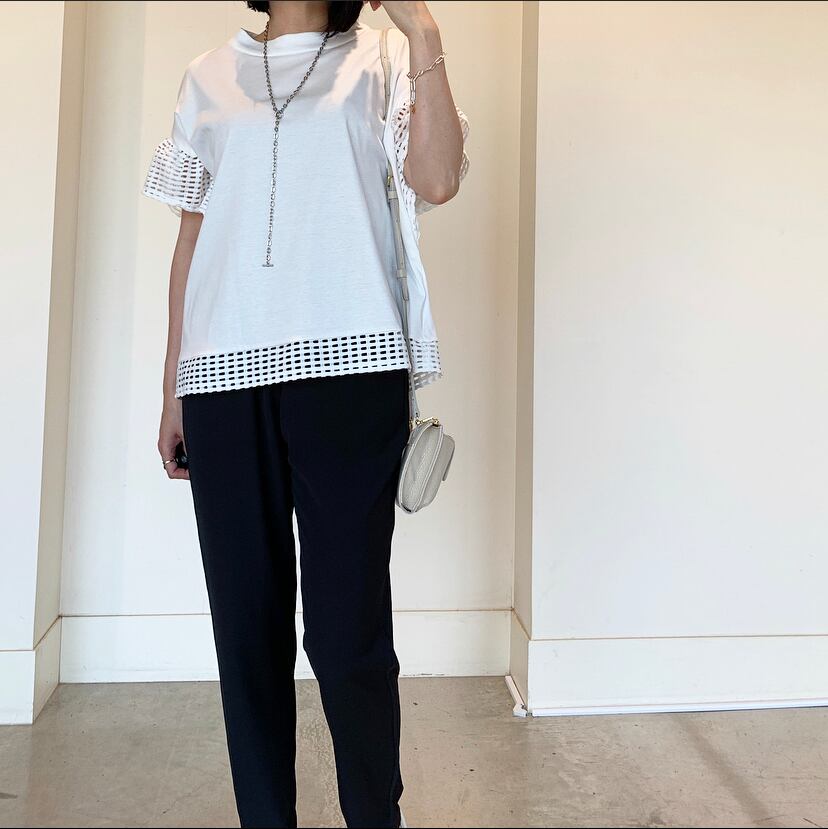 上質コットン素材で着やすいけどキチンと感も◎♪異素材レース切替トップスです。