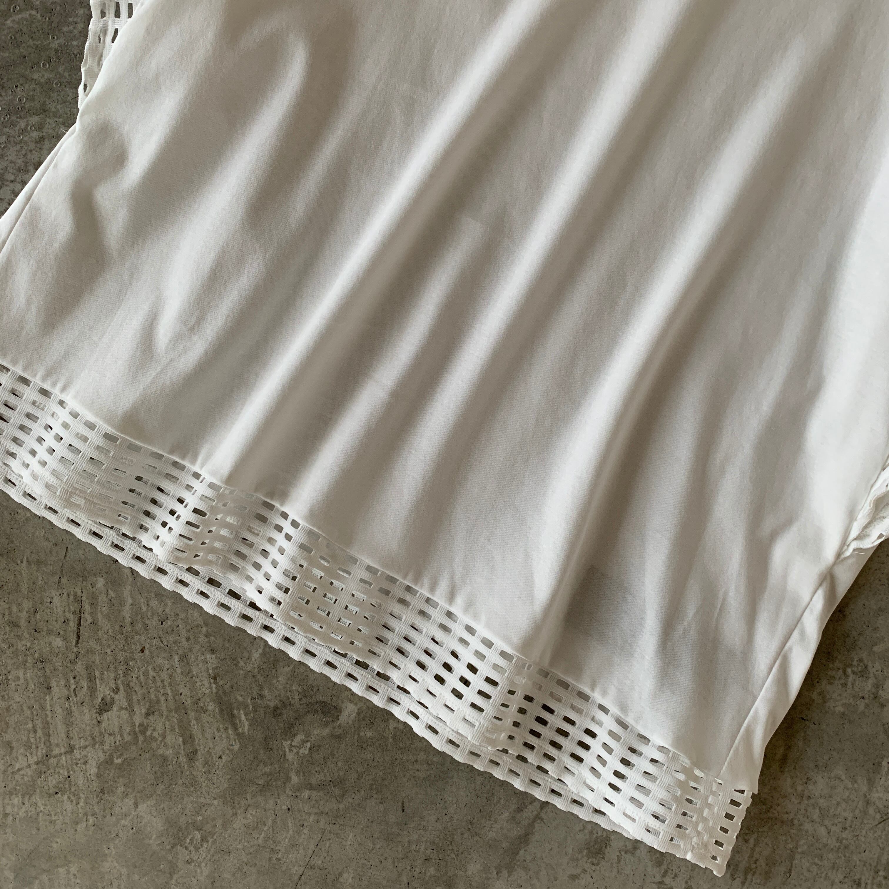 お袖と裾にレースを施した、上質コットン素材のプルオーバートップス。