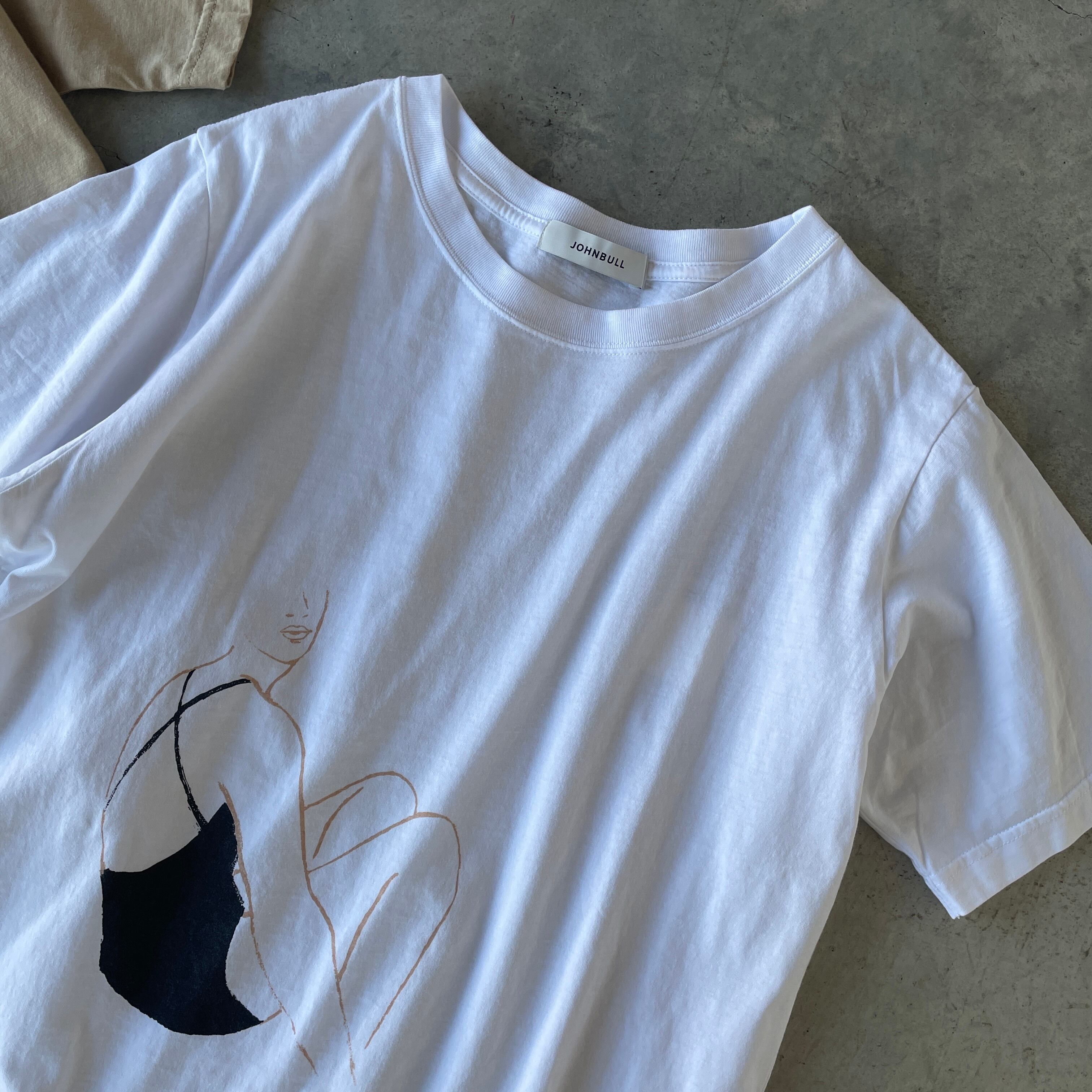 Johnbull ジョンブル オトナな線画水着イラストがかわいい♪ コットンクルーネックプリントTシャツ