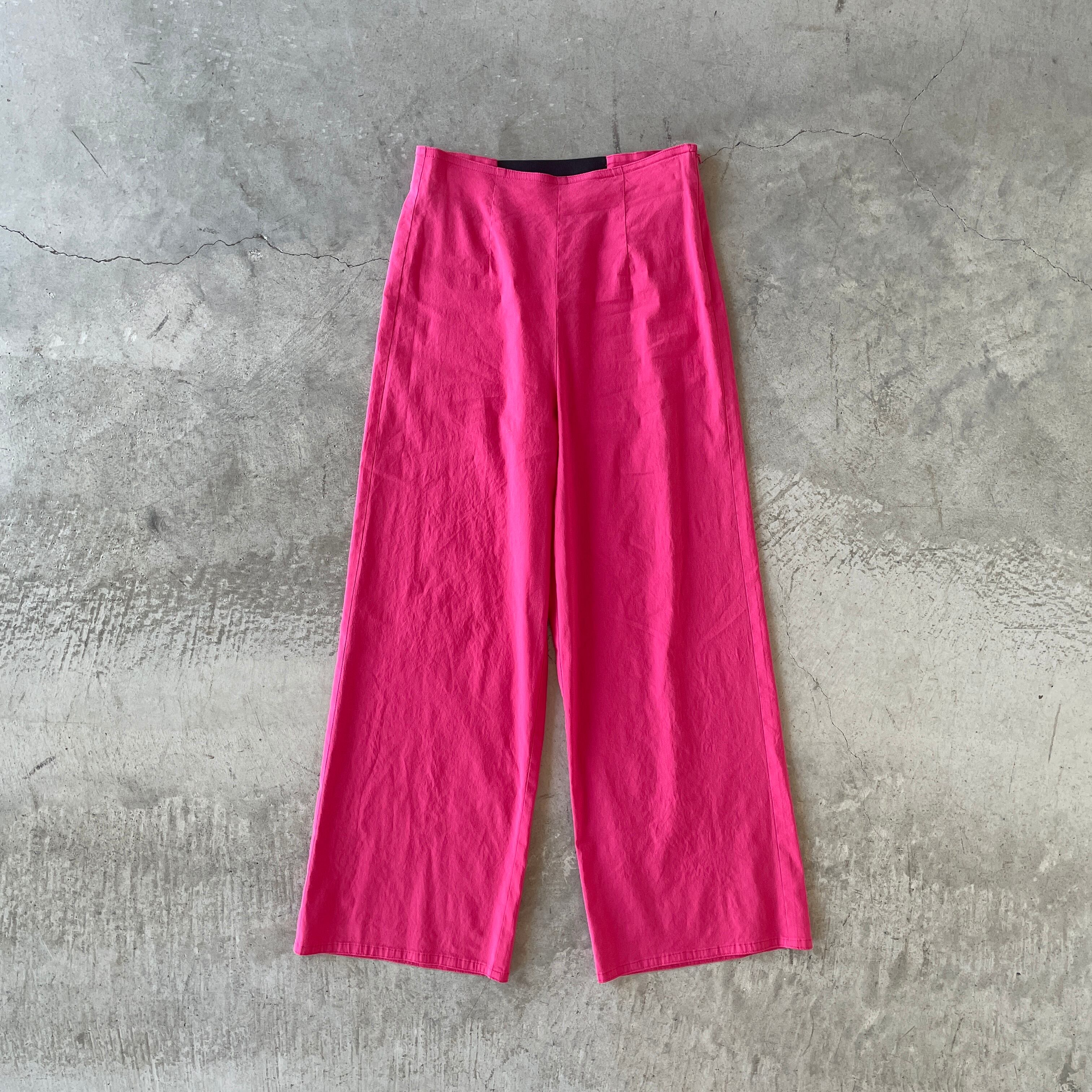リネンパンツも今年は"ピンクカラー"にアップデート♪ サイドジップセミワイドパンツです。
