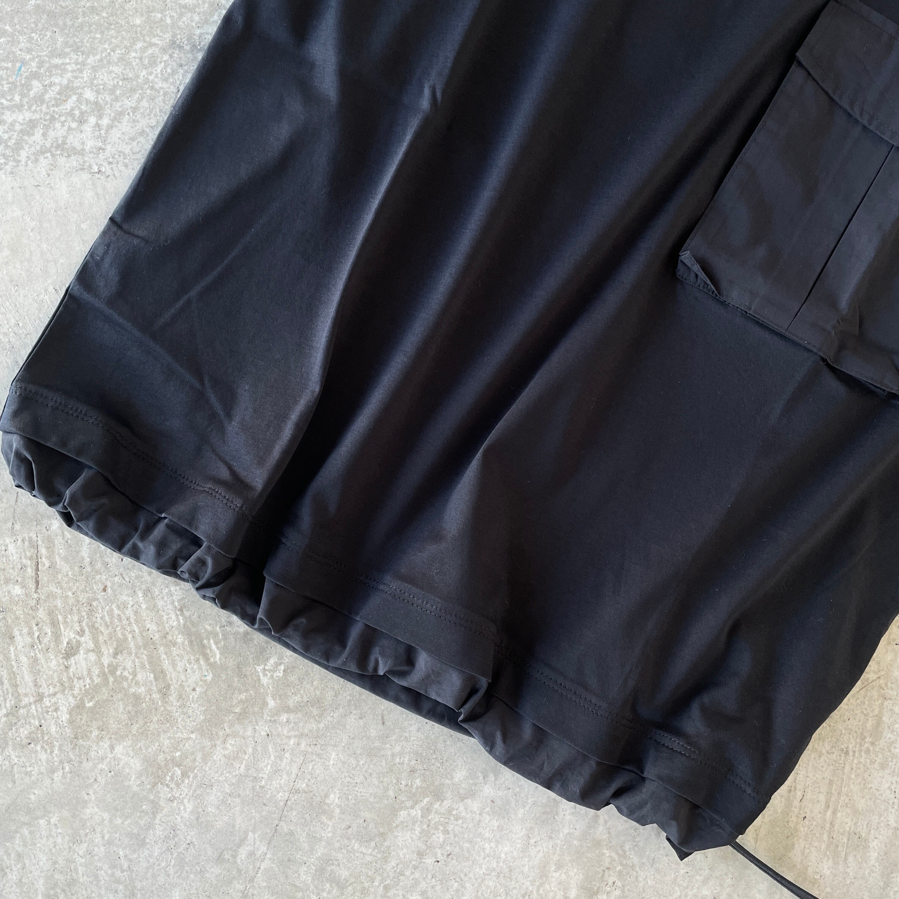 裾ドロストコードで丈感も自由自在♪ ドロストオーバーフロントポケットカットソーTシャツです。