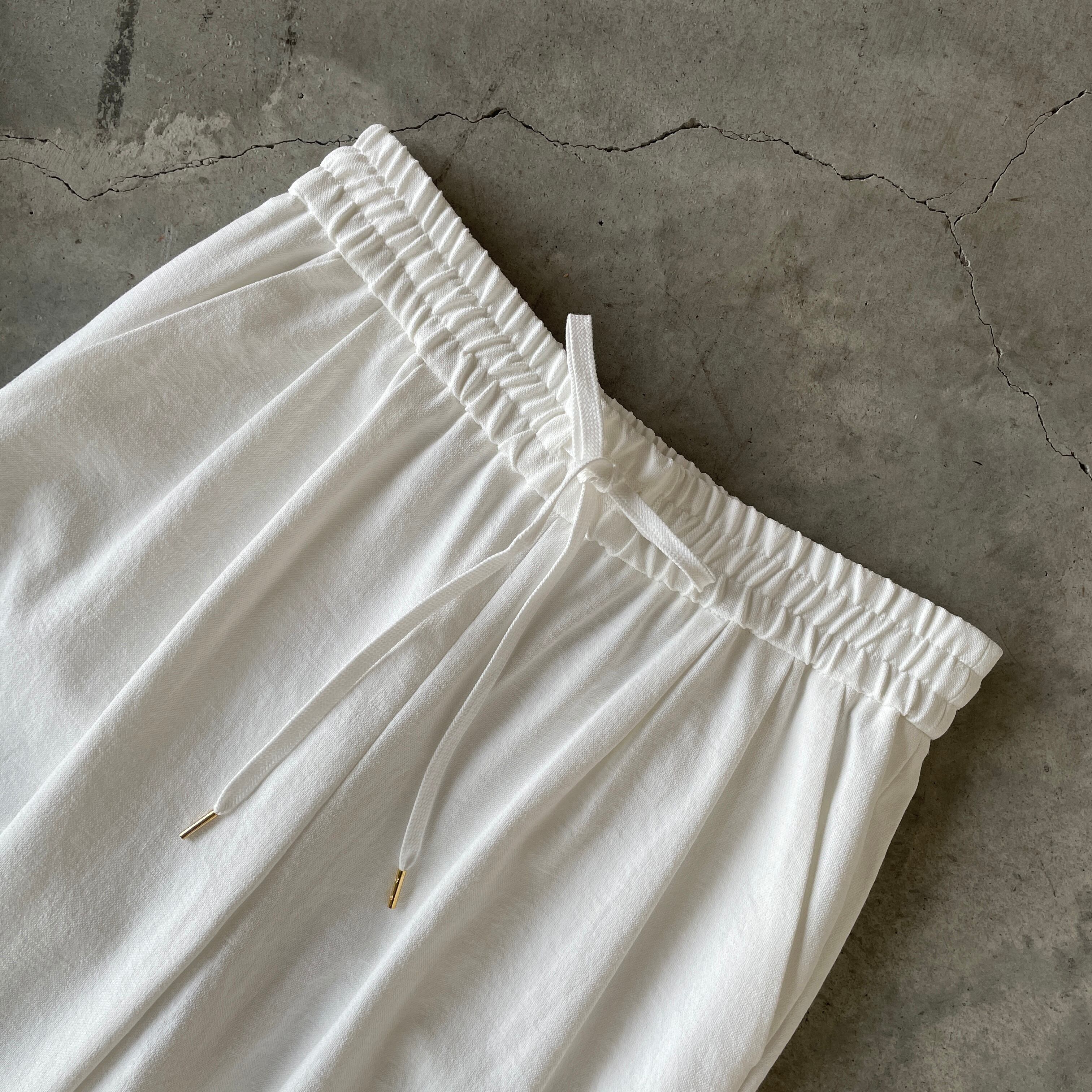 ウエストはドローコード付きの総ゴム仕様もうれしいポイントですね。