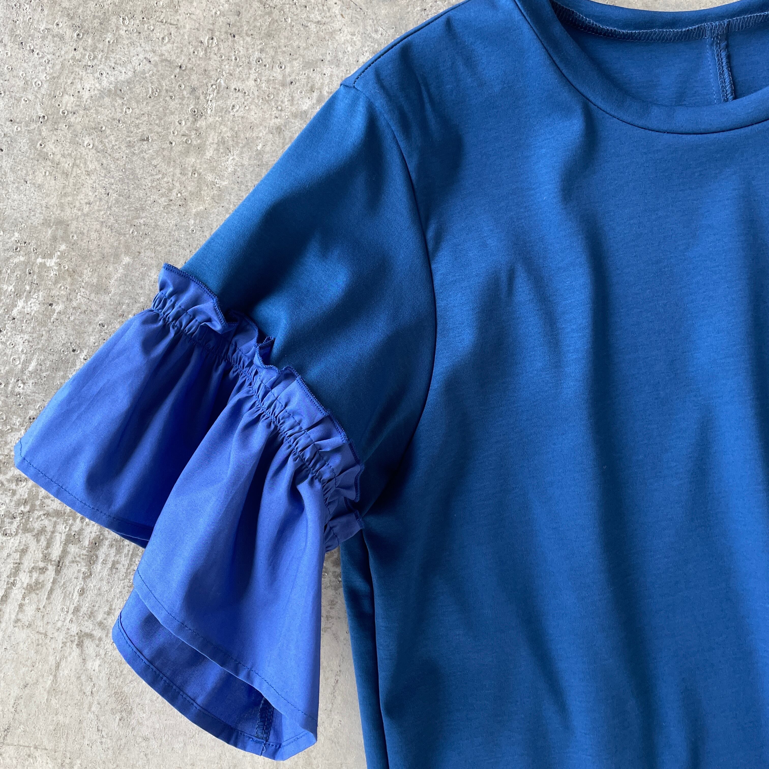 異素材コンビの"フリルスリーブ"がポイント♪ フリルスリーブ異素材コンビカットソートップス