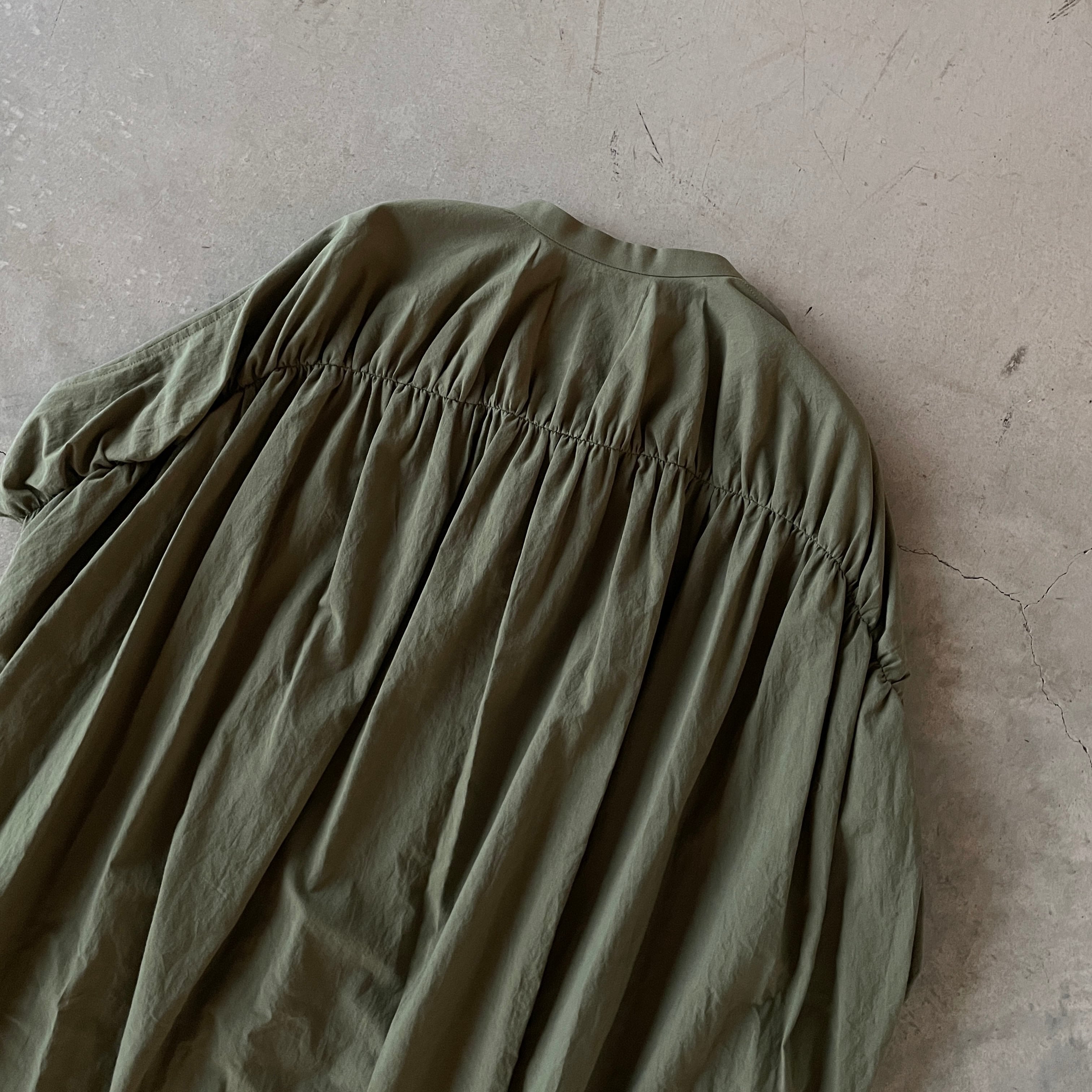 さらっと羽織るだけでこなれ感抜群♪ たっぷりギャザーがかわいい♪バックギャザーロングシャツワンピースです。