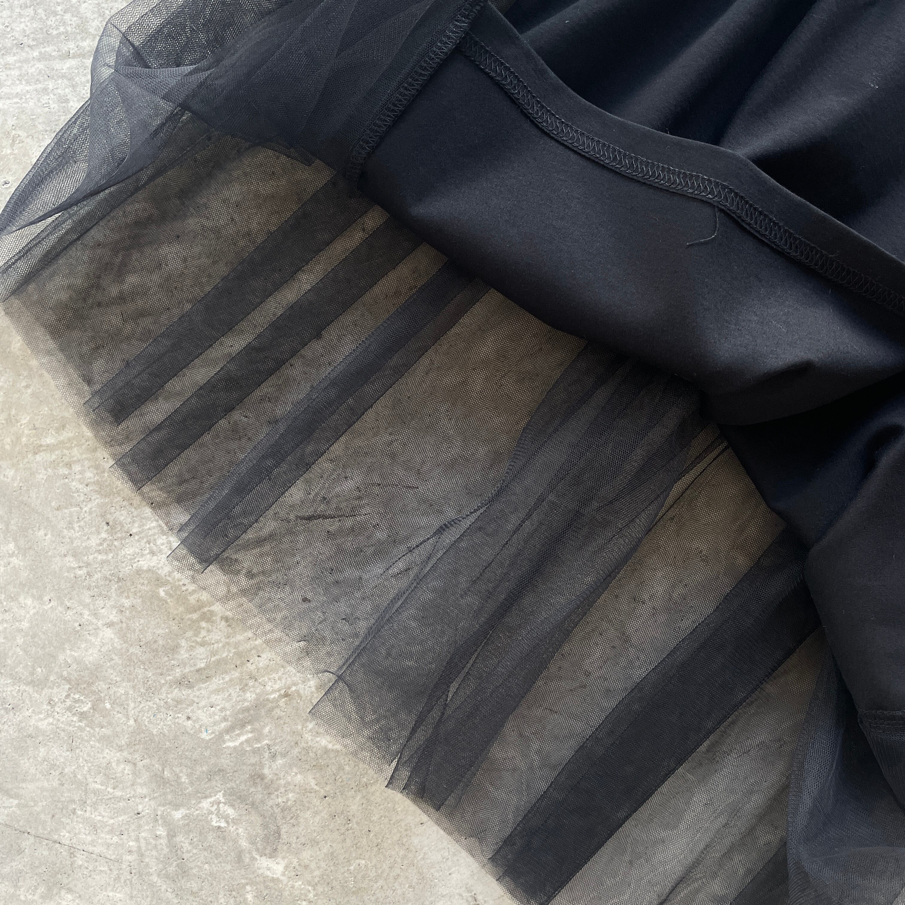 チュール部分は裏地がなく透ける素材感なので、インナーは必須です。(黒のキャミソールやタンクトップがオススメ!)