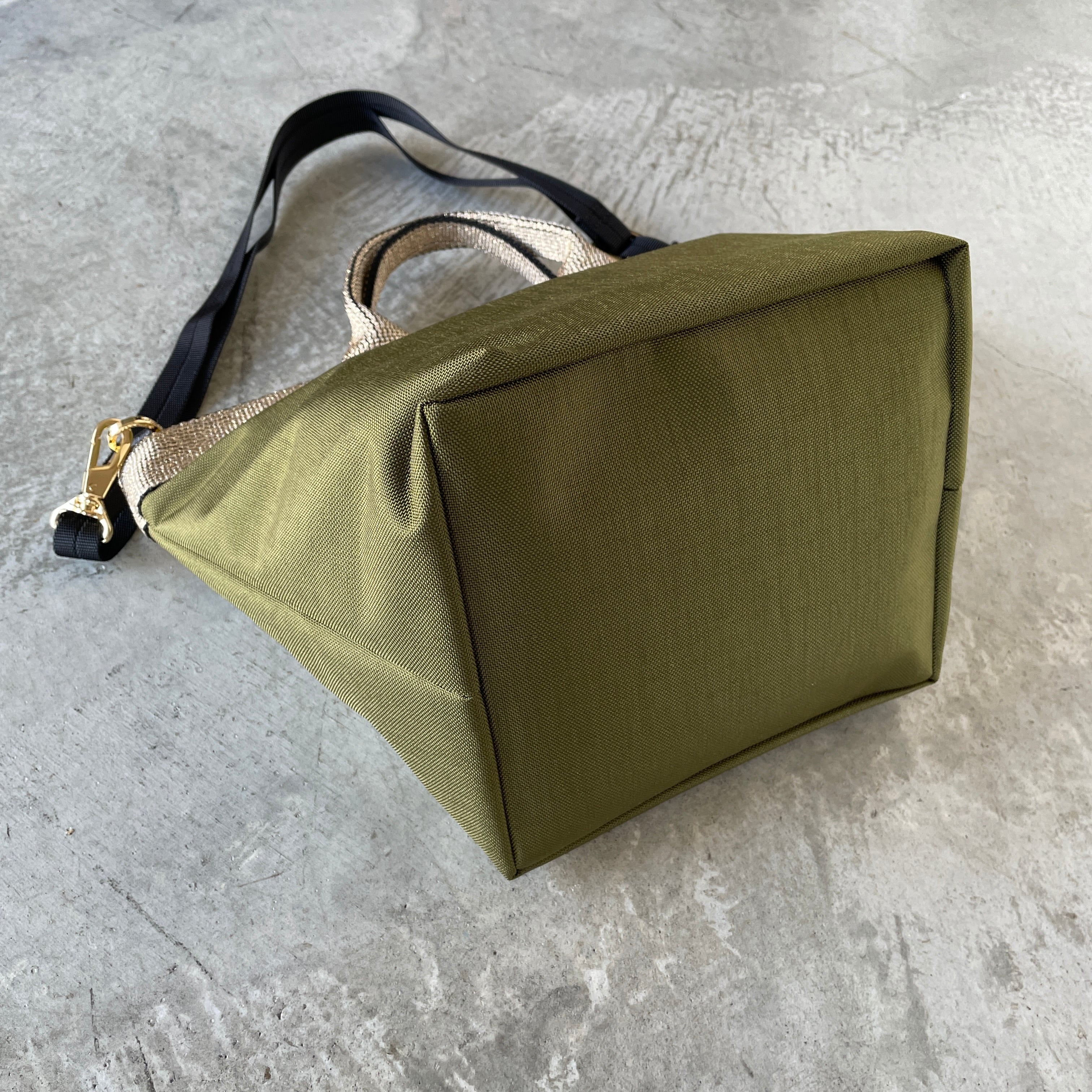 リピーターも多数のデイリー使いにもってこいなトートバッグ♪ ナイロン×ゴールドテープ2wayトートです。