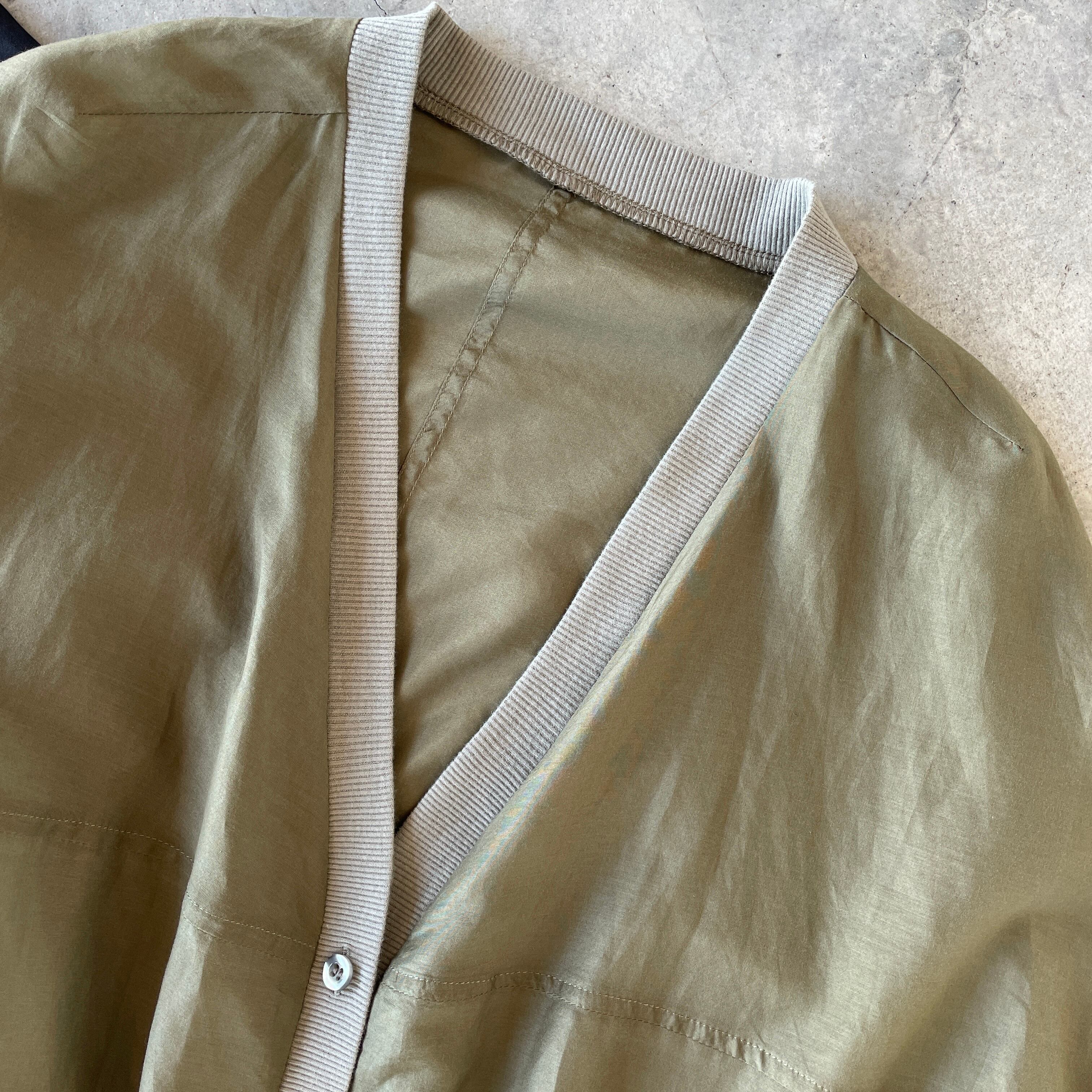 シアーな風合いが存在感を引き立てる♪ シアーVネック異素材コンビカーディガンです。