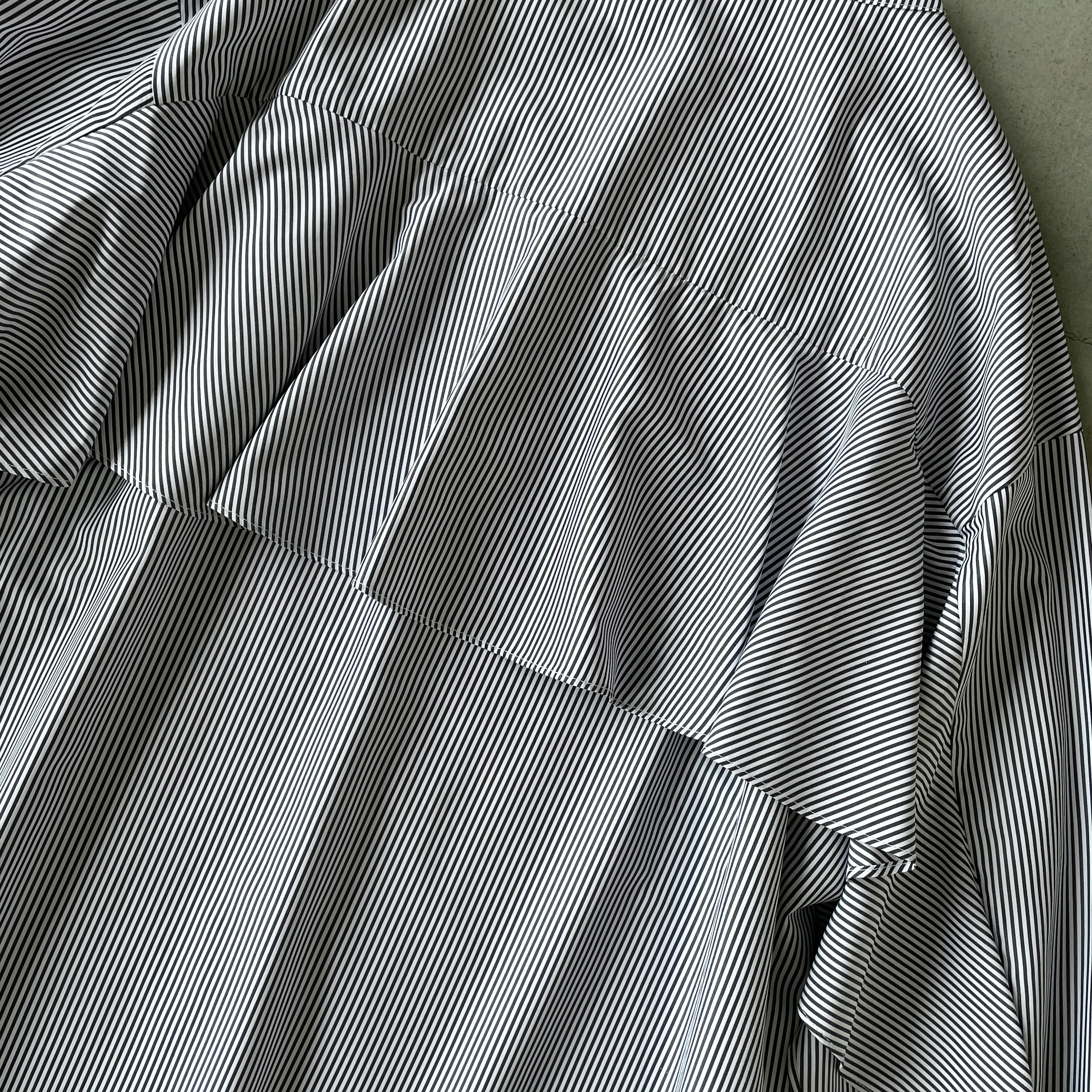 バックフリルで後ろ姿も映える♪ バックコンシャスストライプシャツブラウスです。