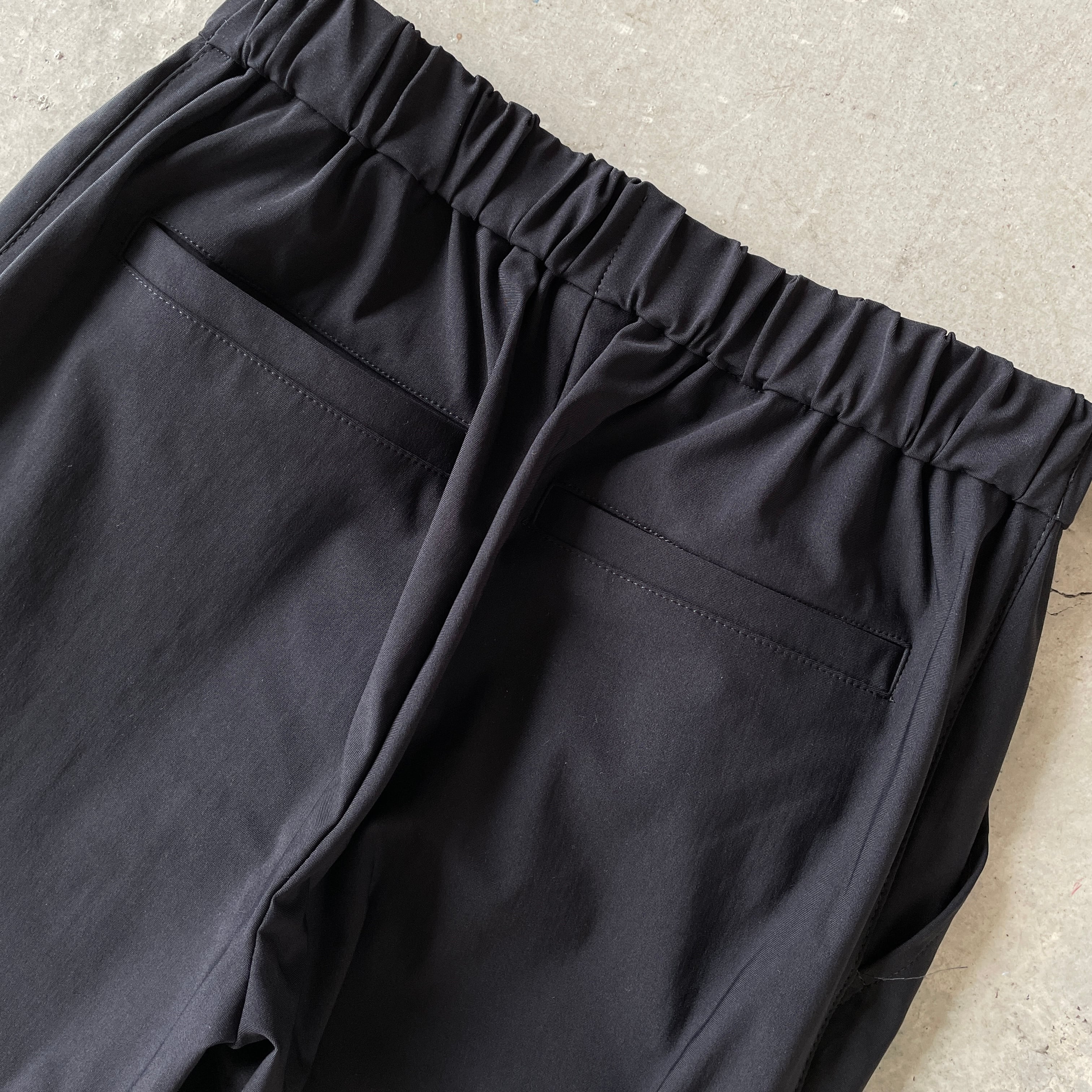 ツルッとした素材感とシルエットでありながら、ウエストゴムでストレスフリー。