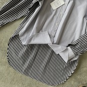 異なるストライプ柄とギンガムチェック柄の生地を切り替えたデザインシャツ。