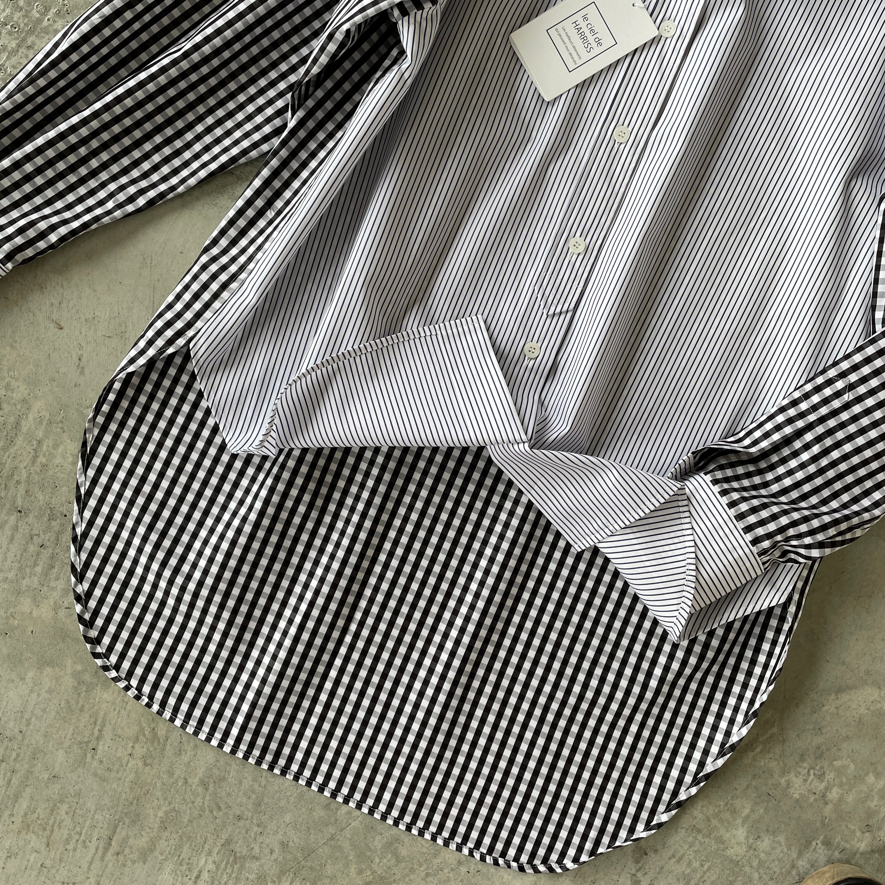 “再再入荷”le ciel de HARRISS ルシェルドハリス 一枚でコーディネートの主役になる遊び心のあるデザイン♪ ストライプ×ギンガムチェック柄 デザインシャツブラウス