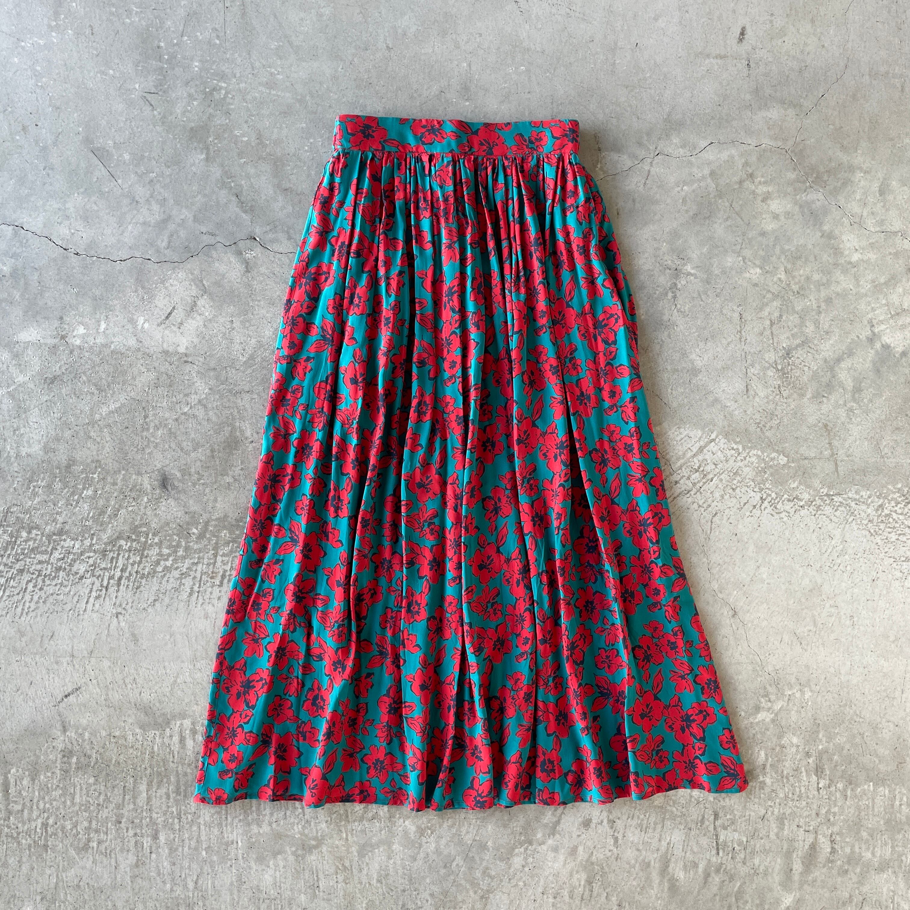 トロミのあるレーヨンローン素材で女性らしい柔らかな動きのあるオリジナルプリントのギャザースカート。