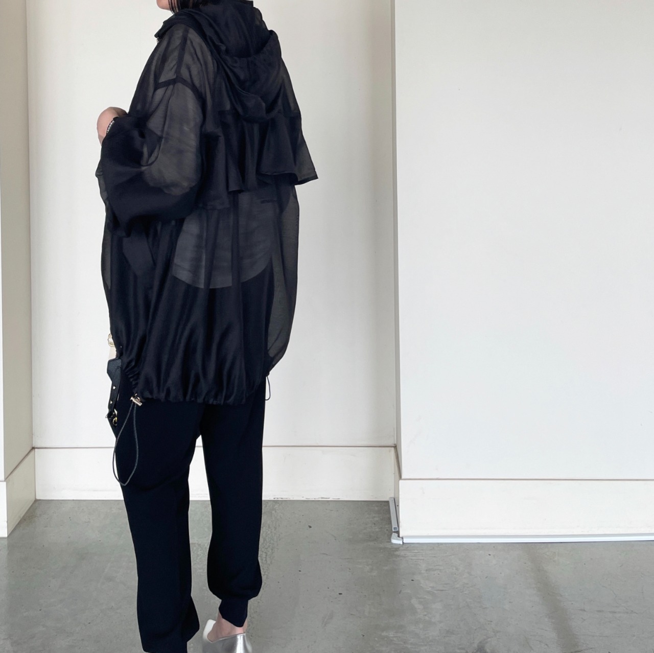 バックフリル&シアー感で1枚でサマ見え優秀パーカー♪ バックフリル2wayシアーパーカーです。