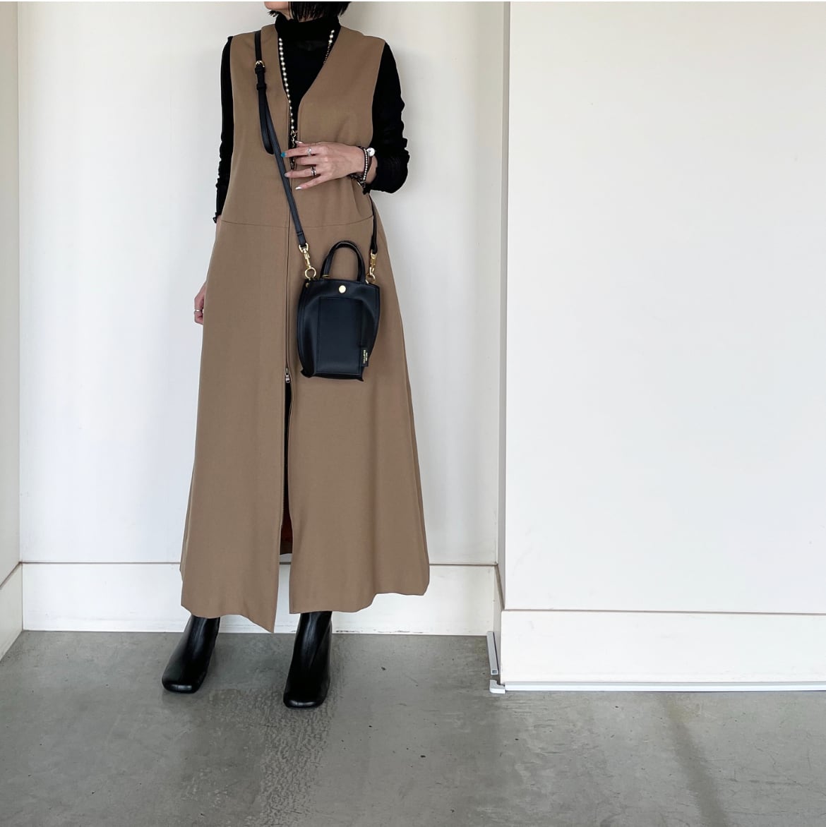 コンパクトなサイズ感ですが2つ折りの財布や携帯など身の回りのものが収納できるのは嬉しいポイントですね♪
