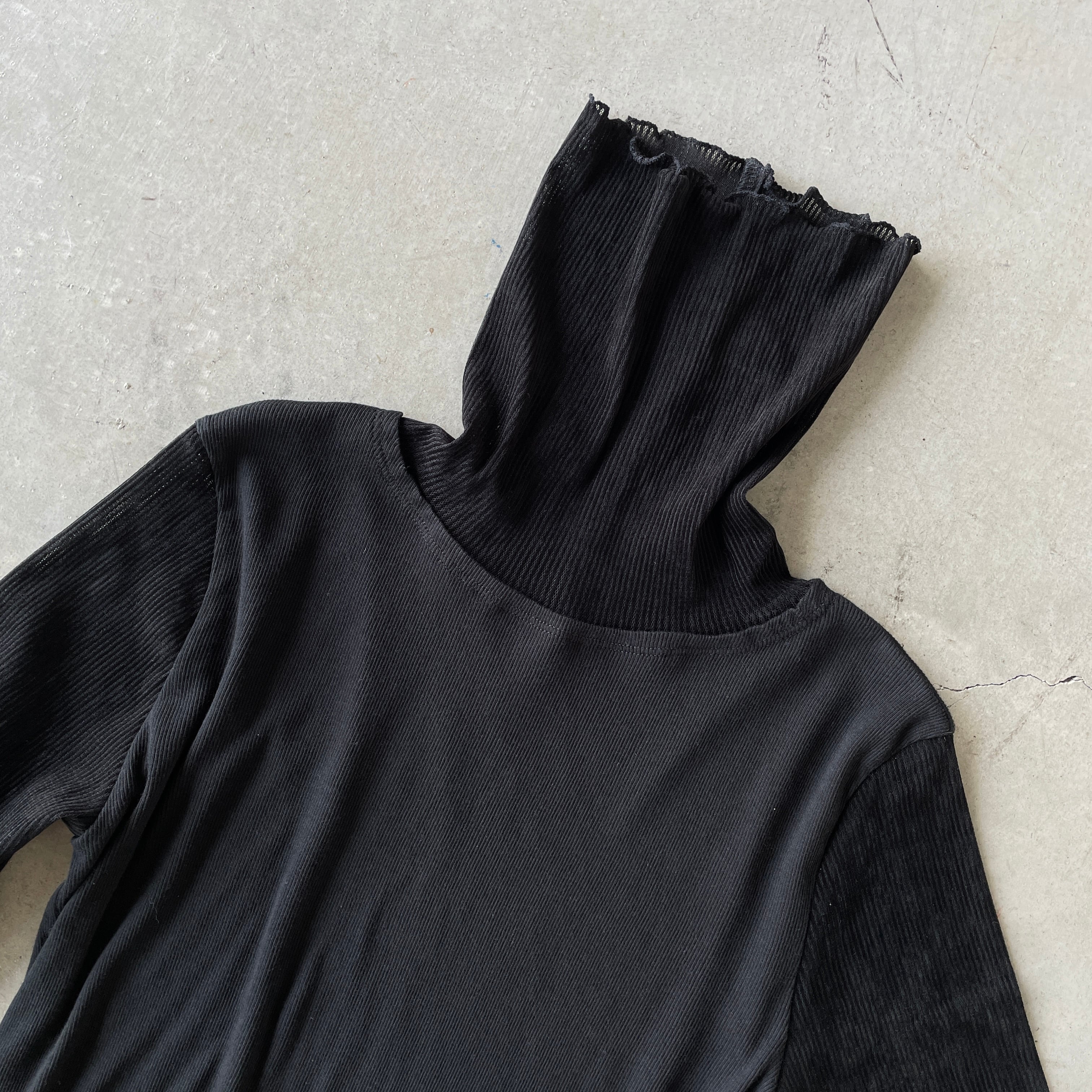 “再再入荷”トレンドの透け感あるシルエットでレイヤードコーデの必需品♪ 異素材コンビシアーインナーハイネックトップス/Si:m スィーム