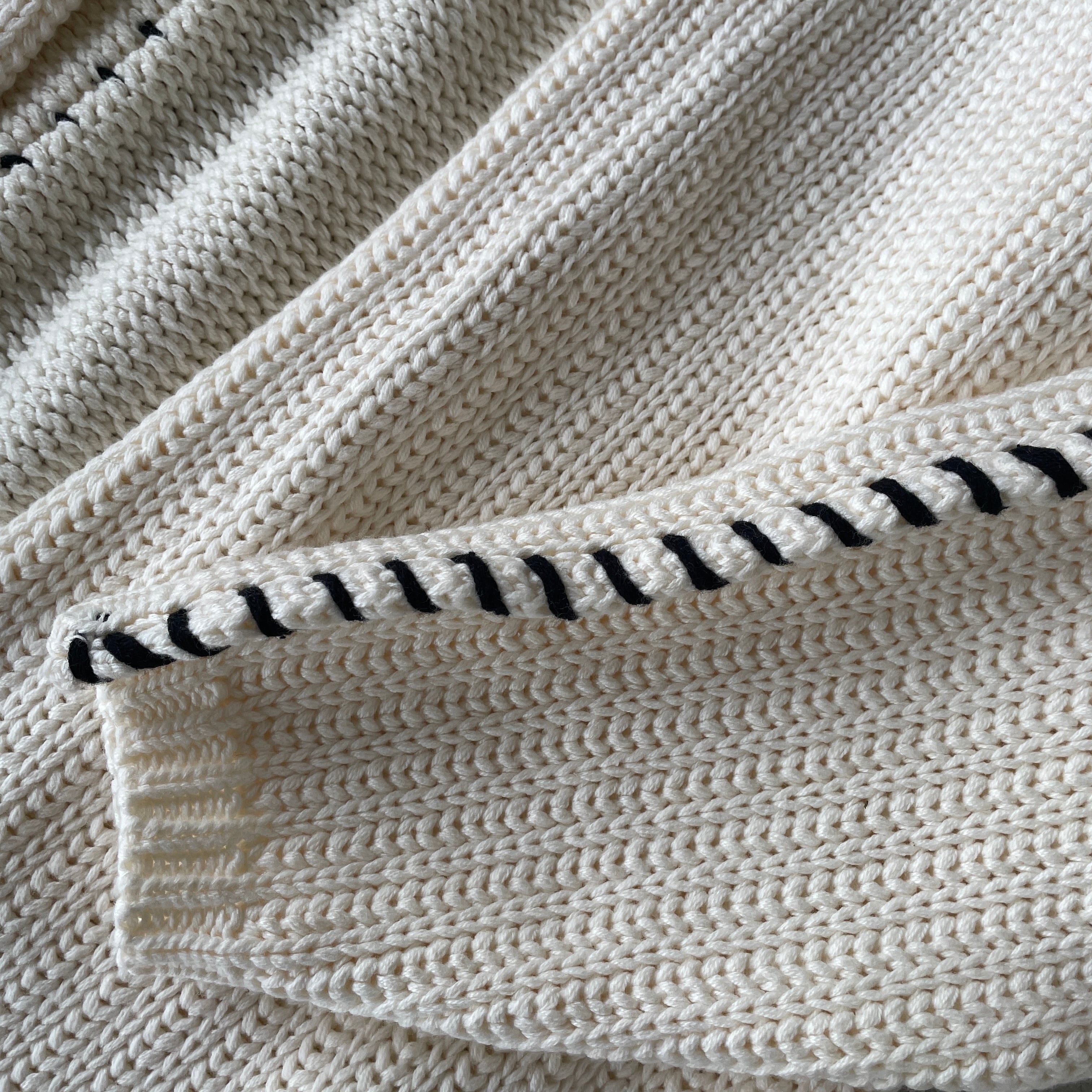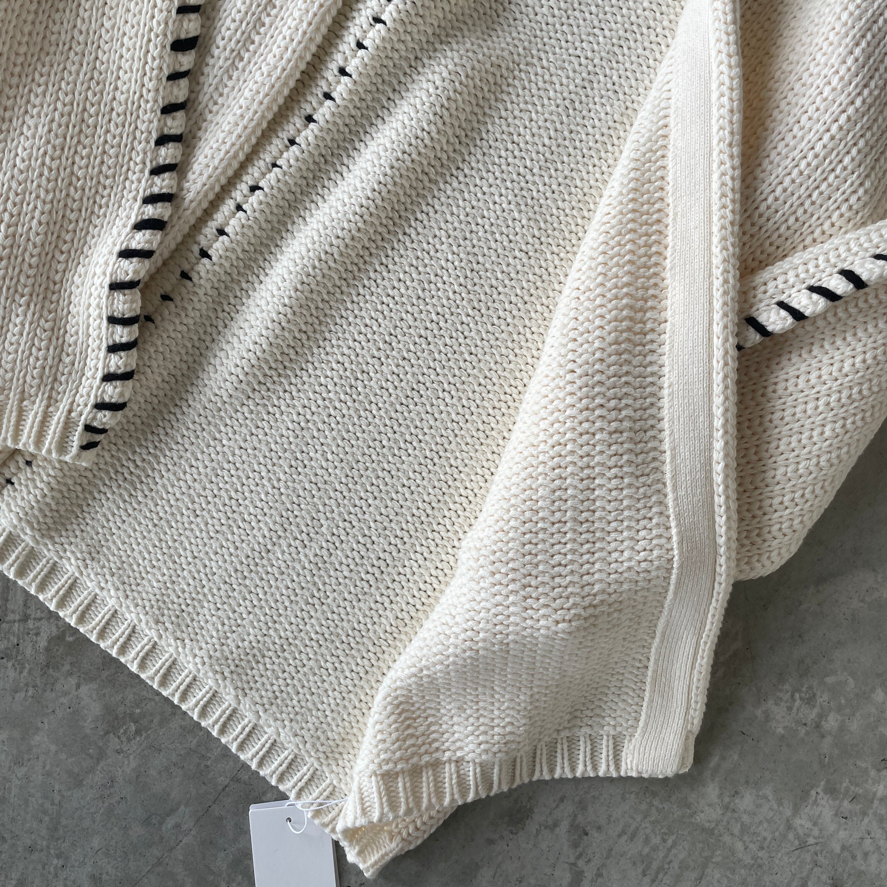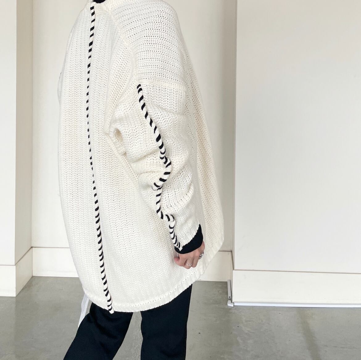 バイカラーのハンドステッチでワンランクアップのお洒落ニットカーデ♪ ハンドステッチカーディガンです。
