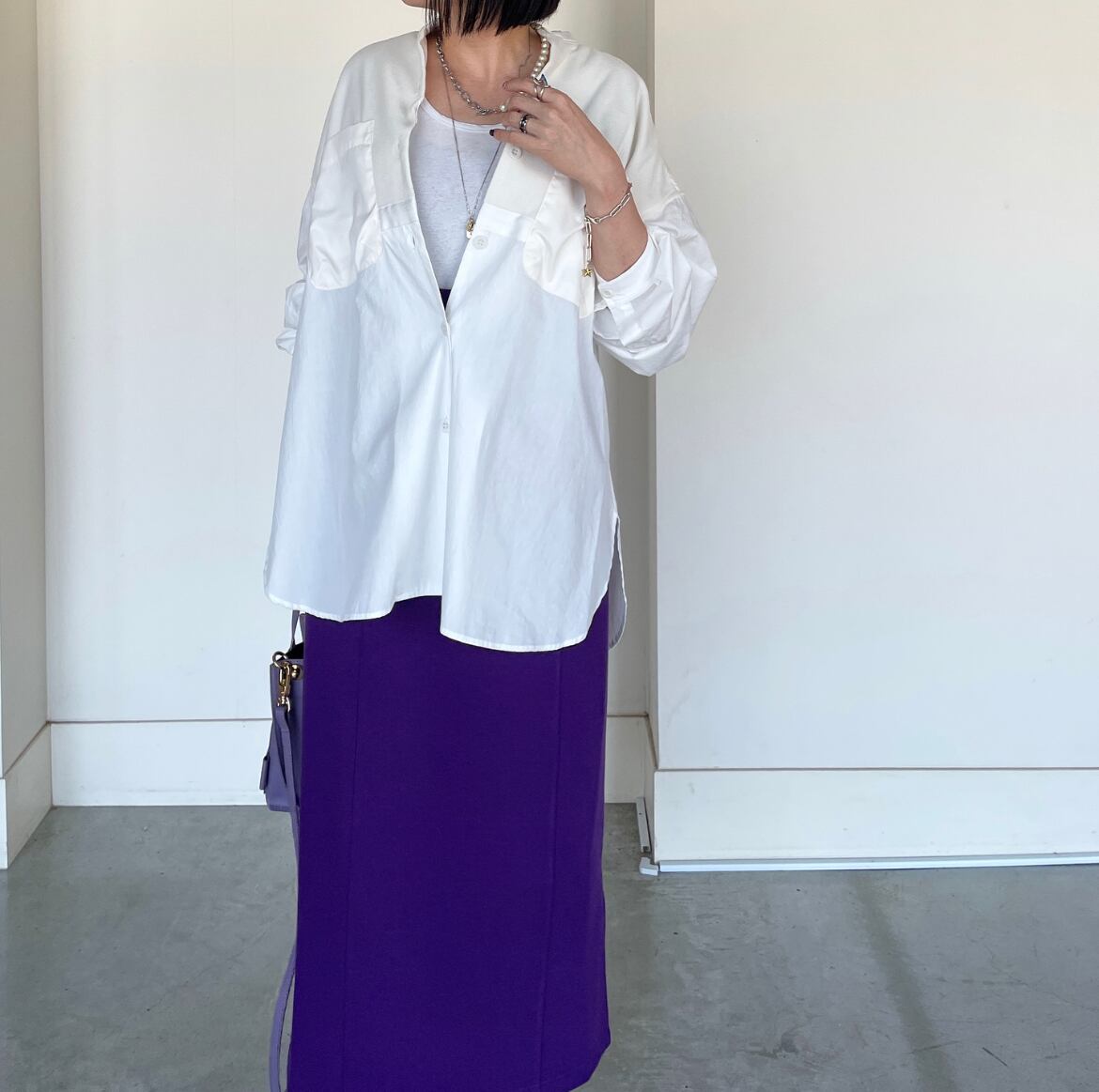 細身のパンツ、ゆるテーパードパンツなどのカジュアルパンツはもちろん、タイトラインのスカートとも好相性♪