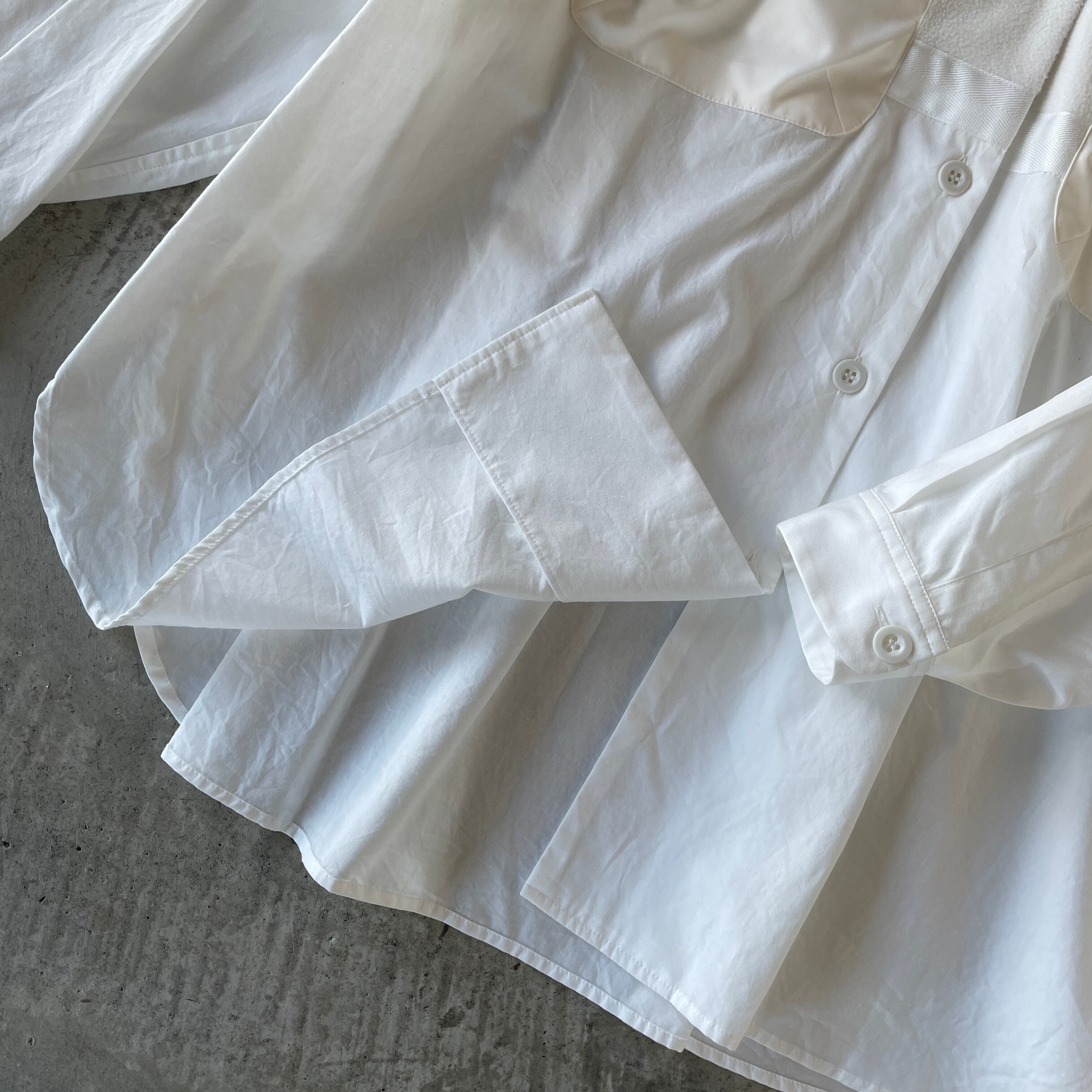 細部にこだわり抜いたデザインが着こなしに個性をプラスしてくれる、異素材ドッキングシャツブラウス。