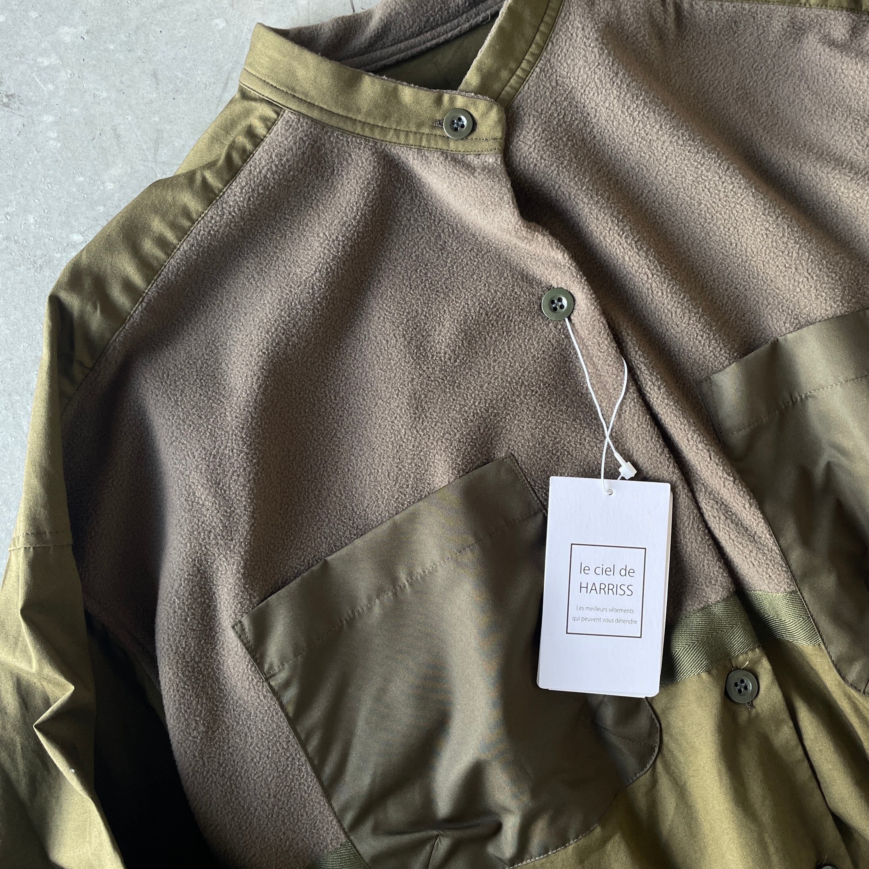 "SALE"パッと目を惹く!!ウォーム感のあるフリース素材とのドッキングが新鮮な着こなしに♪ 異素材ドッキングデザインシャツブラウス/le ciel de HARRISS ルシェルドハリス