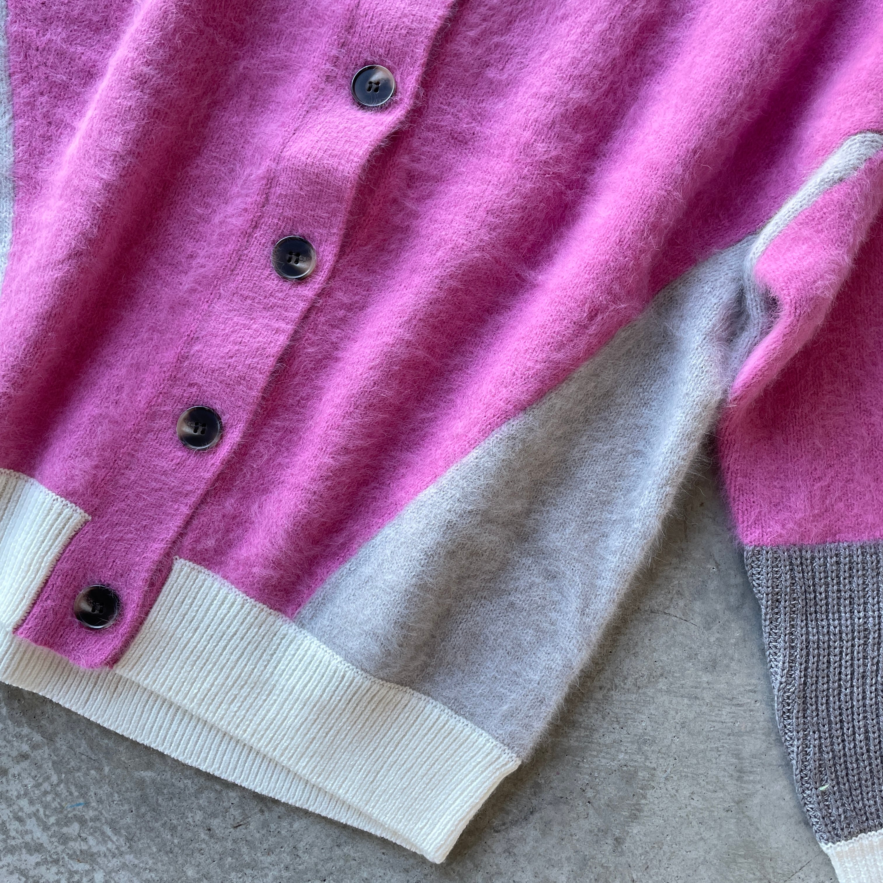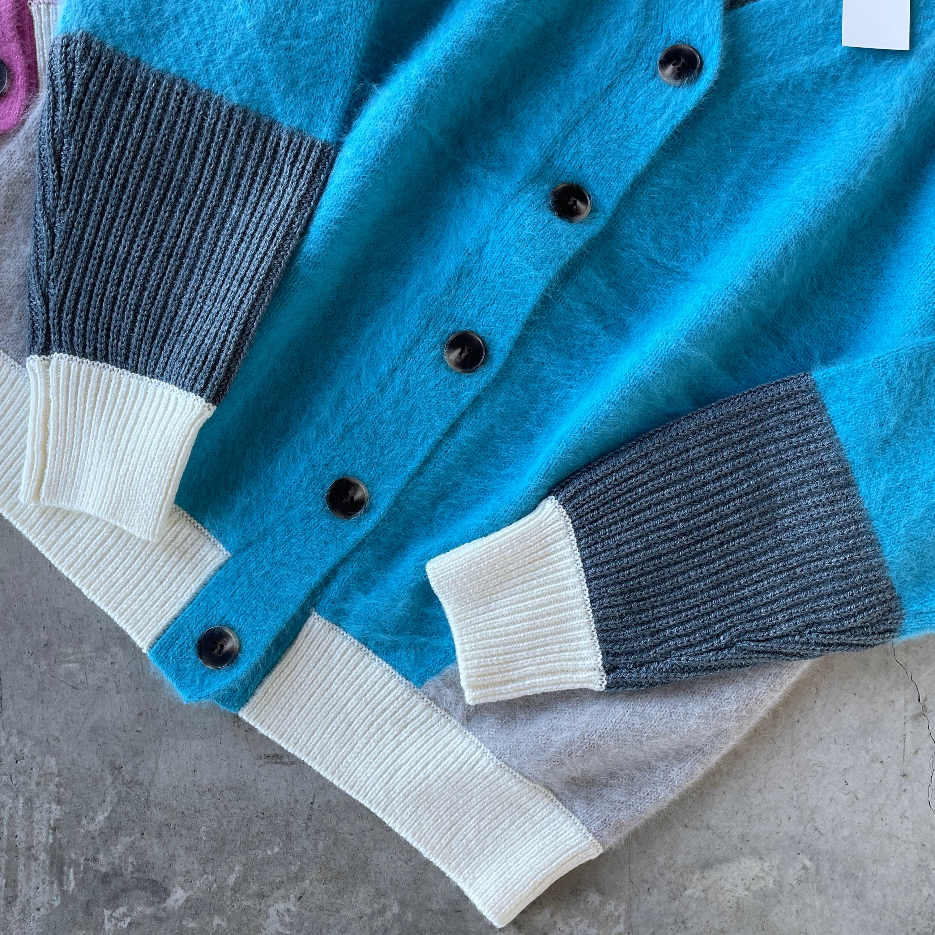 "SALE"鮮やかカラーで冬コーデを華やかに!センスあふれる配色もポイント♪ フォックスニットコンビ バイカラーVネックニットカーディガン/EN'DAY エンデイ