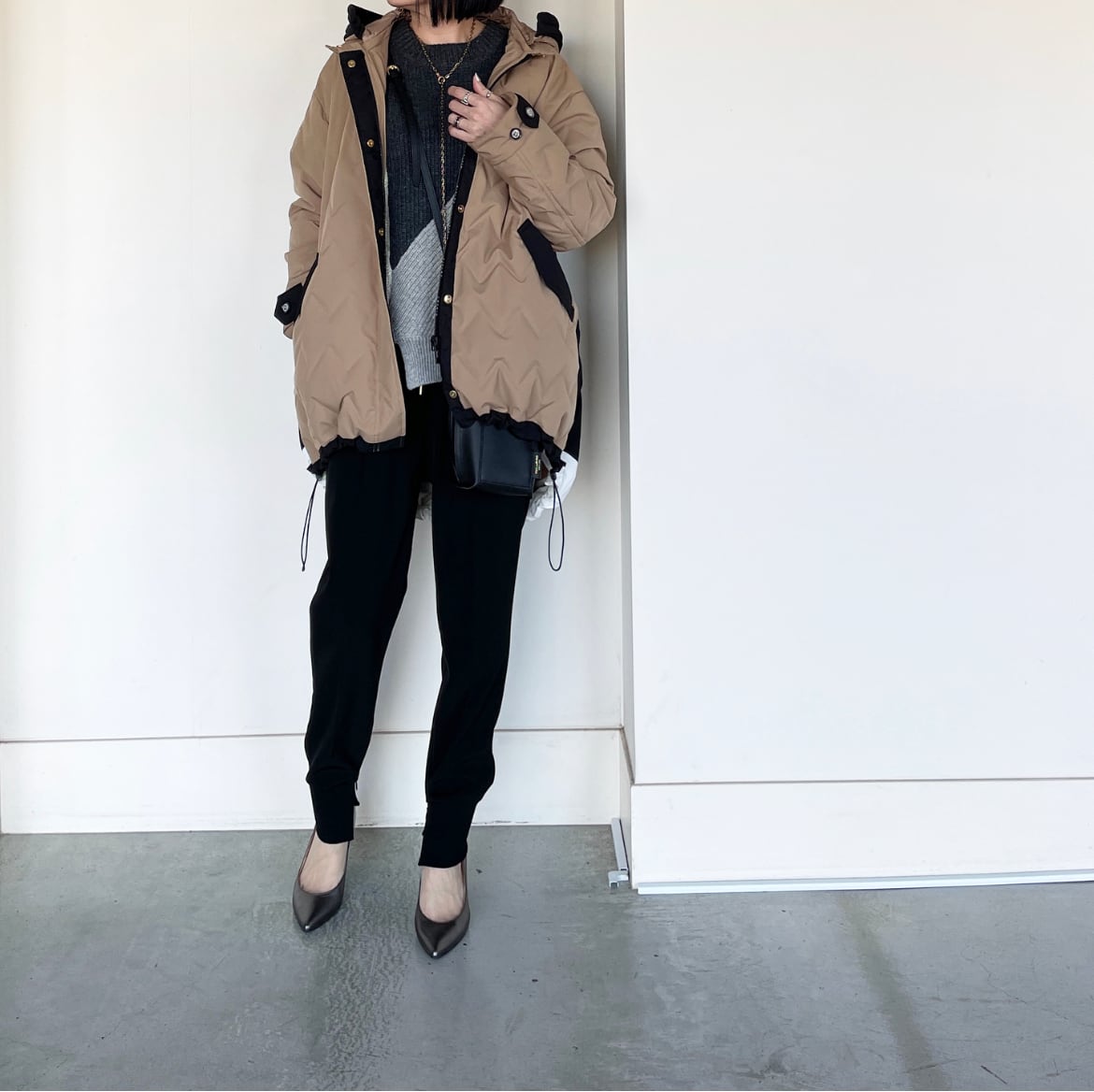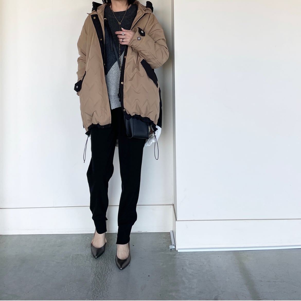 3色配色デザインが絶妙で、前後差のある着丈もヒップ周りもすっぽりとカバーしてくれ安心感も♪