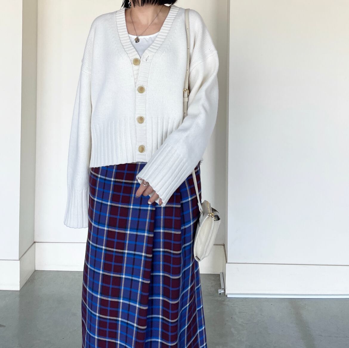 タイトなトップスをインしたミニマムなコーデから、トレンドのオーバーサイズのカラーニットやスウェットとのスタイリングもおすすめです。