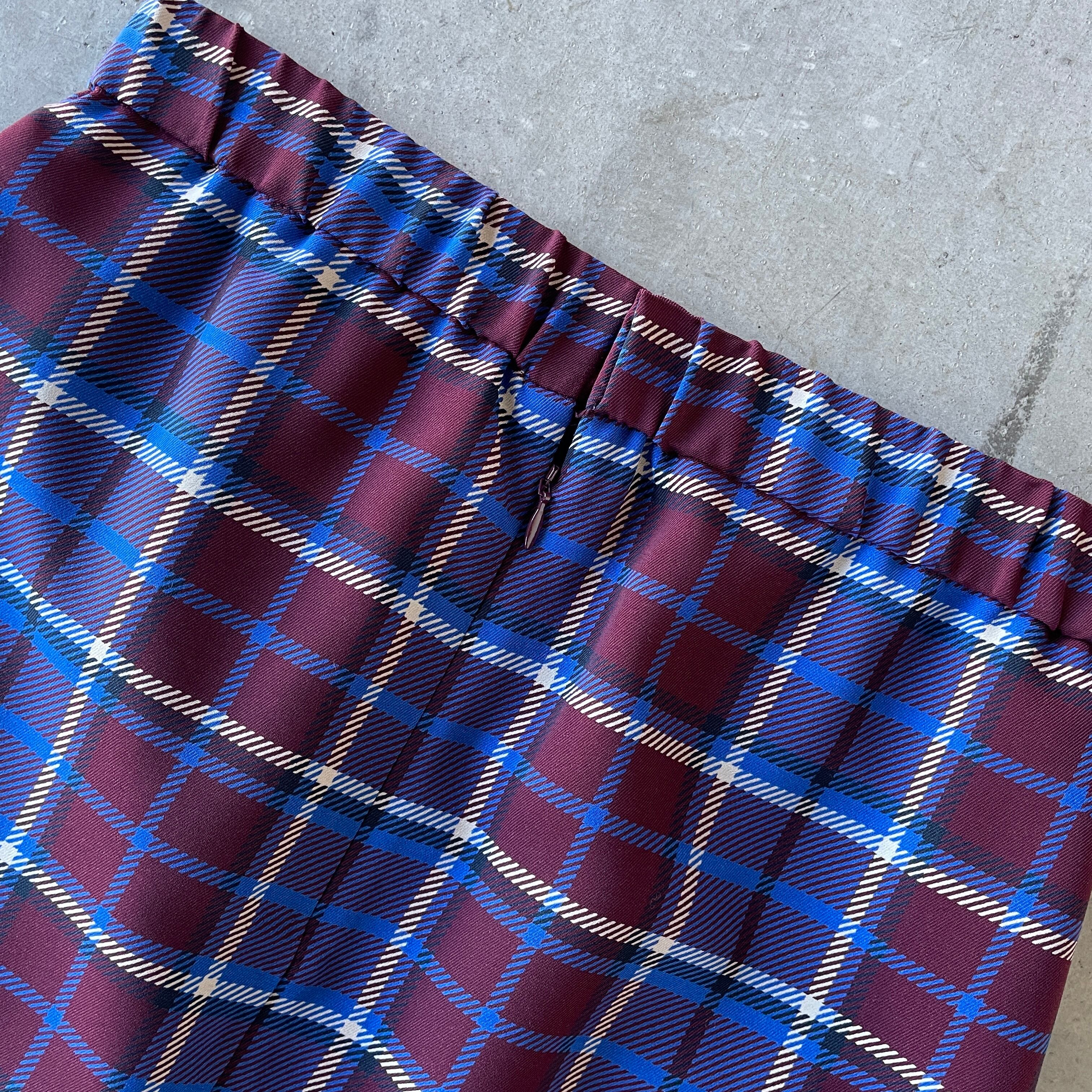 すっきりとしたIラインシルエットの華やかチェックのスカート。