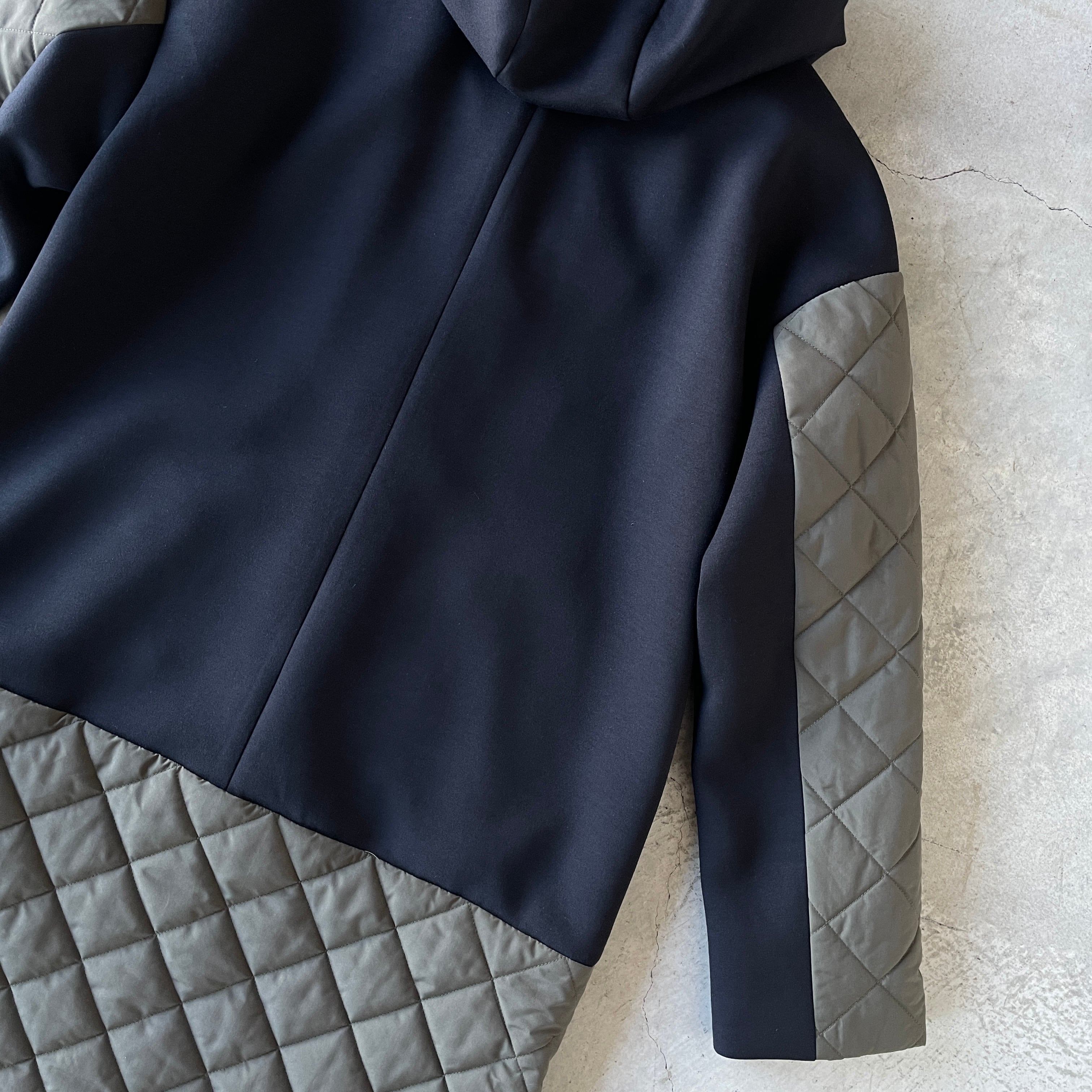 キルティング切替が◎♪デイリー使いにももってこいな♪ キルティング×ダンボールニット コンビフーディーコートです。